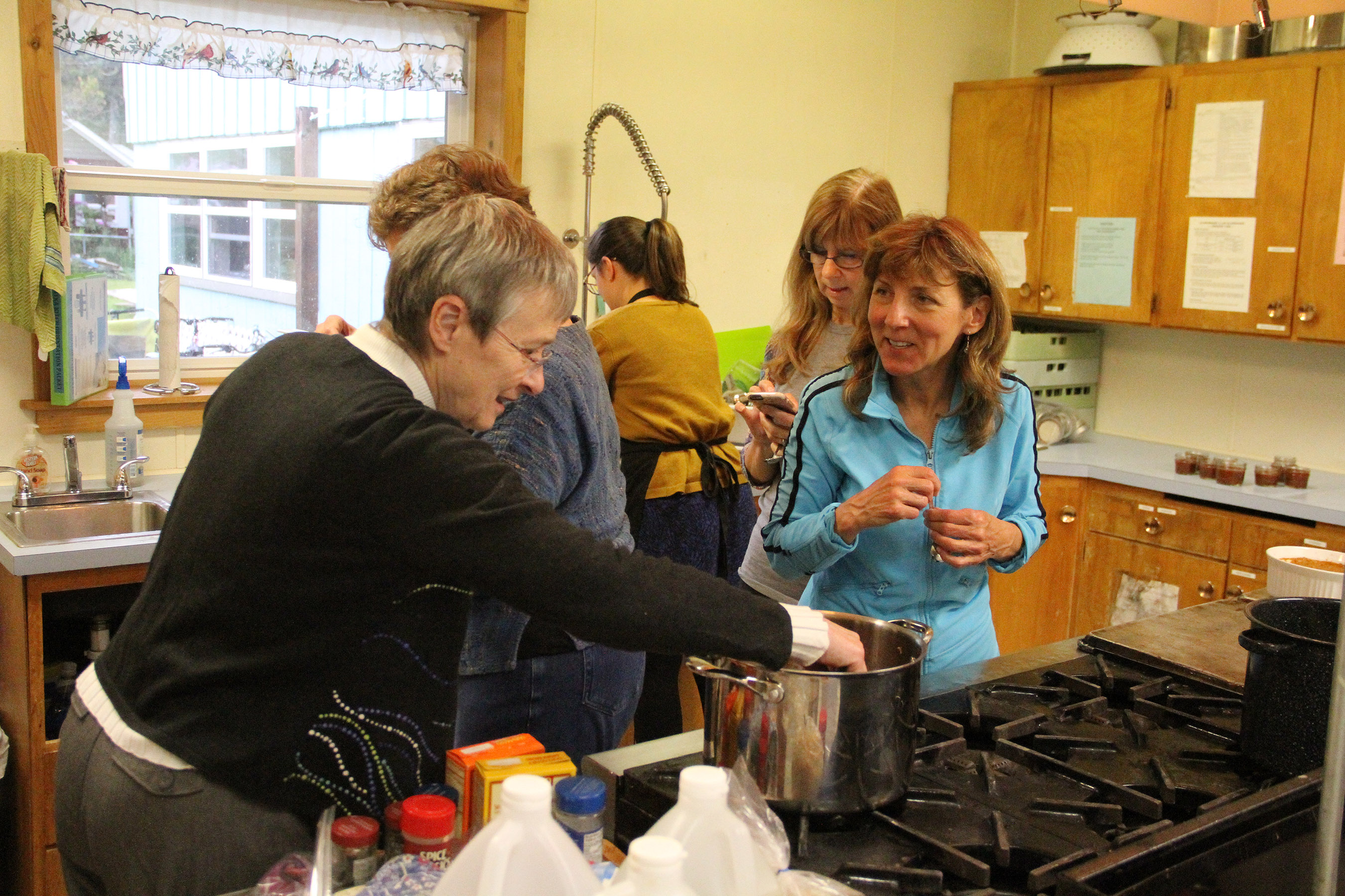 BarbaraAndDeniseTasteRhubarbKetchup Published June 28, 2017 at 2700 × 1800 in Scenes from the Sitka Kitch’s Preserving the Harvest class on creative ways to use rhubarb ← Previous Next →
