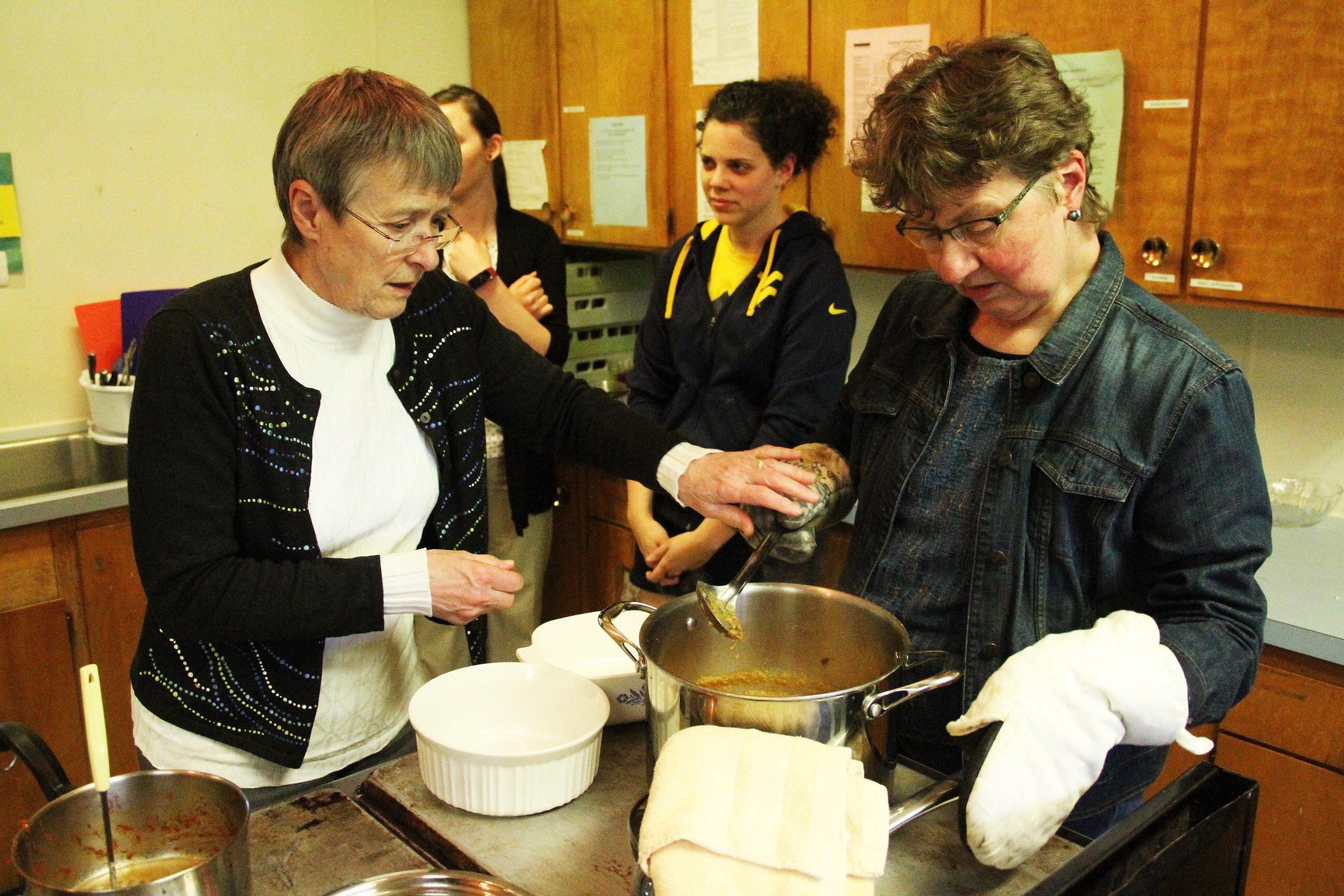 BarbaraNancyJoPrepareToPourCurriedRhubarbLentilMixIntoBakingDishes Published June 28, 2017 at 2700 × 1800 in Scenes from the Sitka Kitch’s Preserving the Harvest class on creative ways to use rhubarb ← Previous Next →