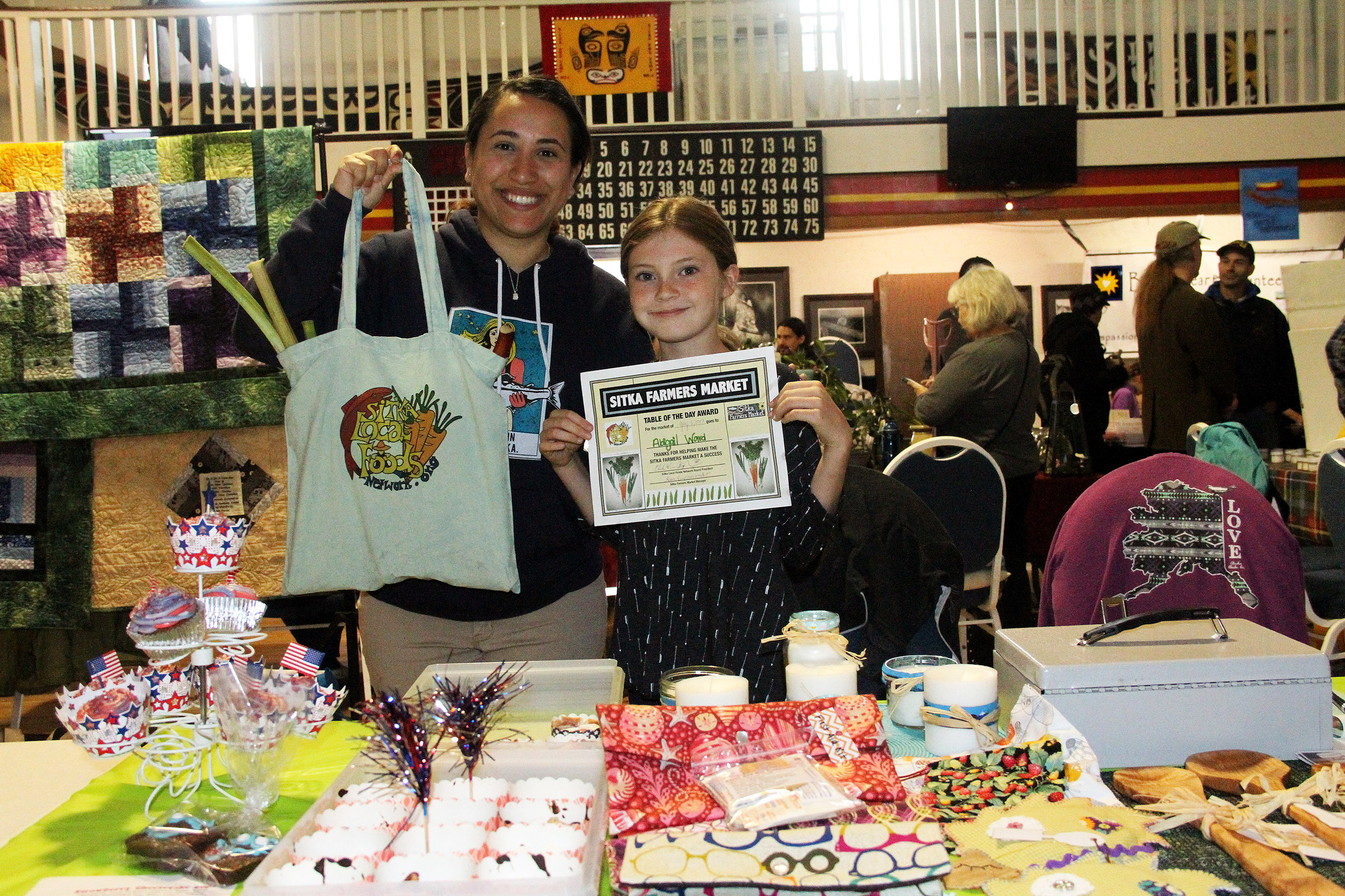 TableOfTheDayMarketManagerNinaVizcarrondoWithAbigailWardKidVendor Published July 2, 2017 at 2700 × 1800 in Scenes from the first Sitka Farmers Market of the 2017 summer season ← Previous Next →