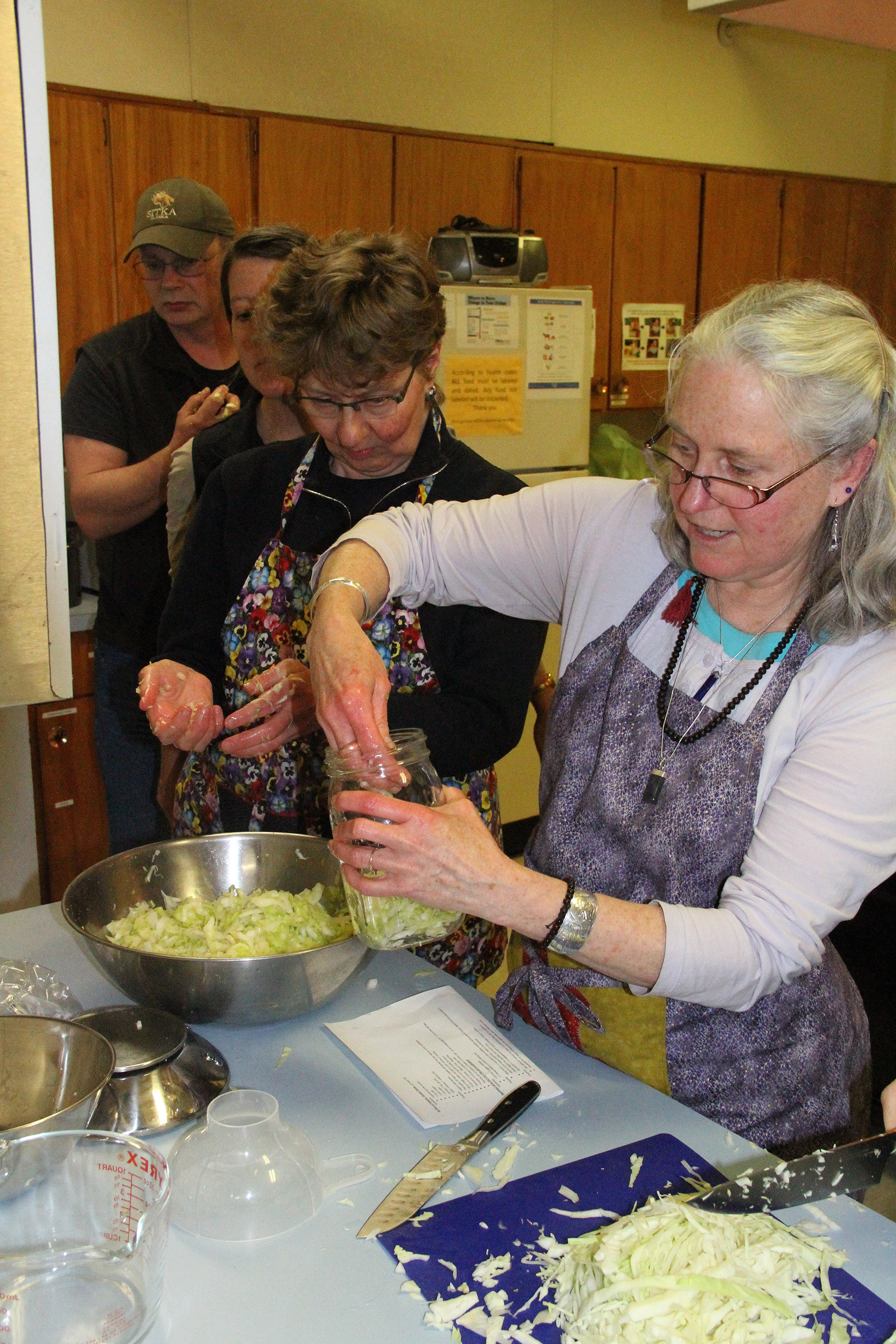LisaSadleirHartShowsHowToStuffCabbageIntoJars Published July 13, 2017 at 1800 × 2700 in Scenes from the Sitka Kitch’s Preserving the Harvest class on simple pickles and sauerkraut ← Previous Next →