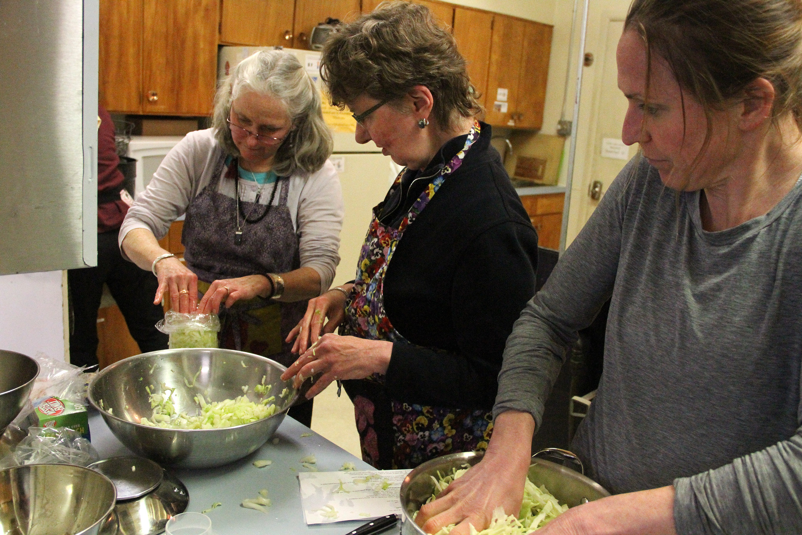 LisaSadleirHartShowsNancyJoHowToSealOffSauerkrautJarWithBaggie Published July 13, 2017 at 2700 × 1800 in Scenes from the Sitka Kitch’s Preserving the Harvest class on simple pickles and sauerkraut ← Previous Next →