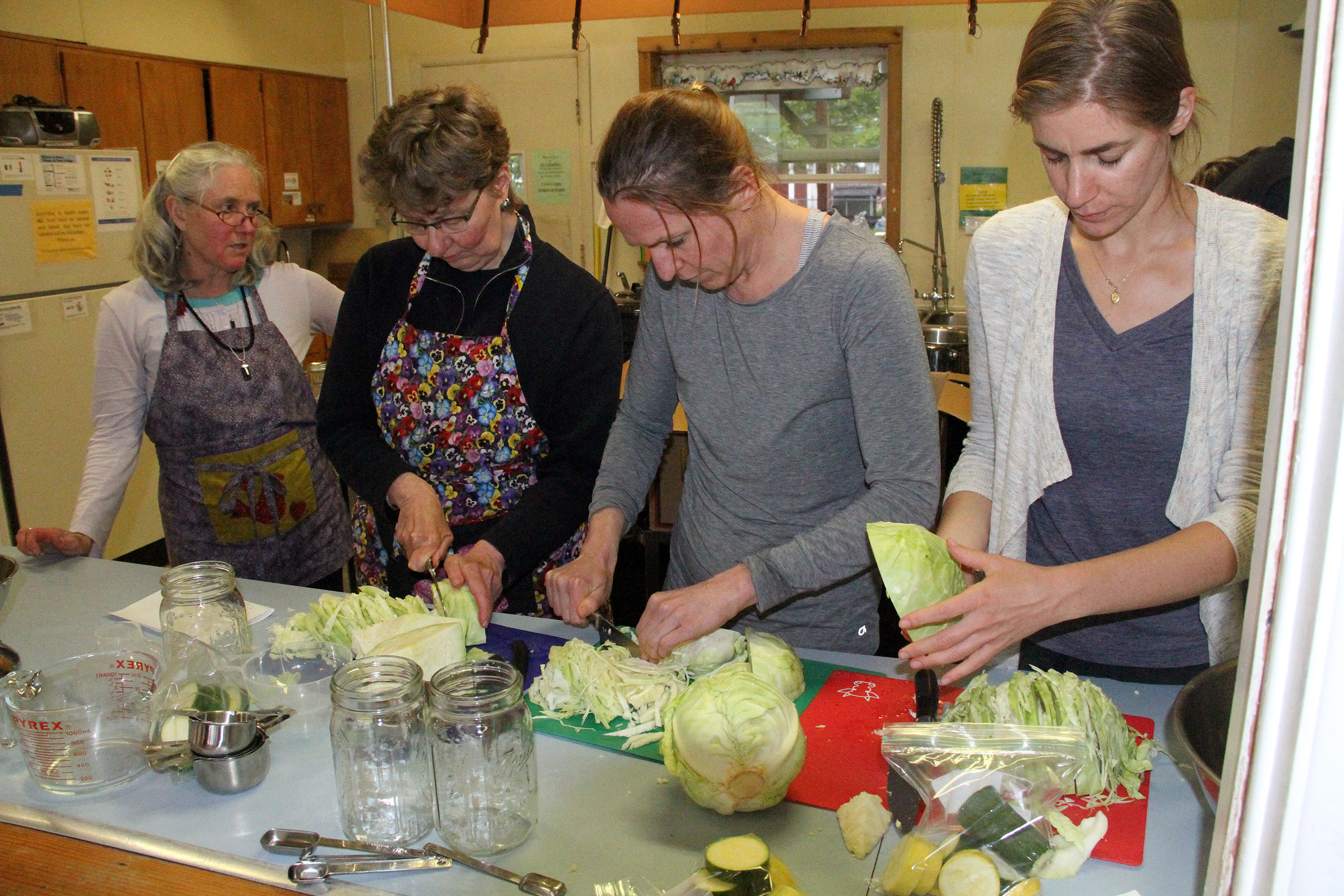 LisaSadleirHartWatchesAsNancyJoAdrienneAndMaryChopCabbage Published July 13, 2017 at 2700 × 1800 in Scenes from the Sitka Kitch’s Preserving the Harvest class on simple pickles and sauerkraut ← Previous Next →