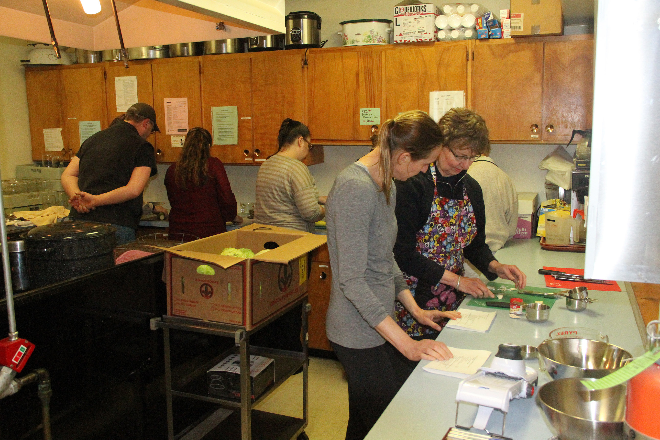 StudentsAtStationsAsAdrienneNancyJoCheckRecipe Published July 13, 2017 at 2700 × 1800 in Scenes from the Sitka Kitch’s Preserving the Harvest class on simple pickles and sauerkraut ← Previous Next →