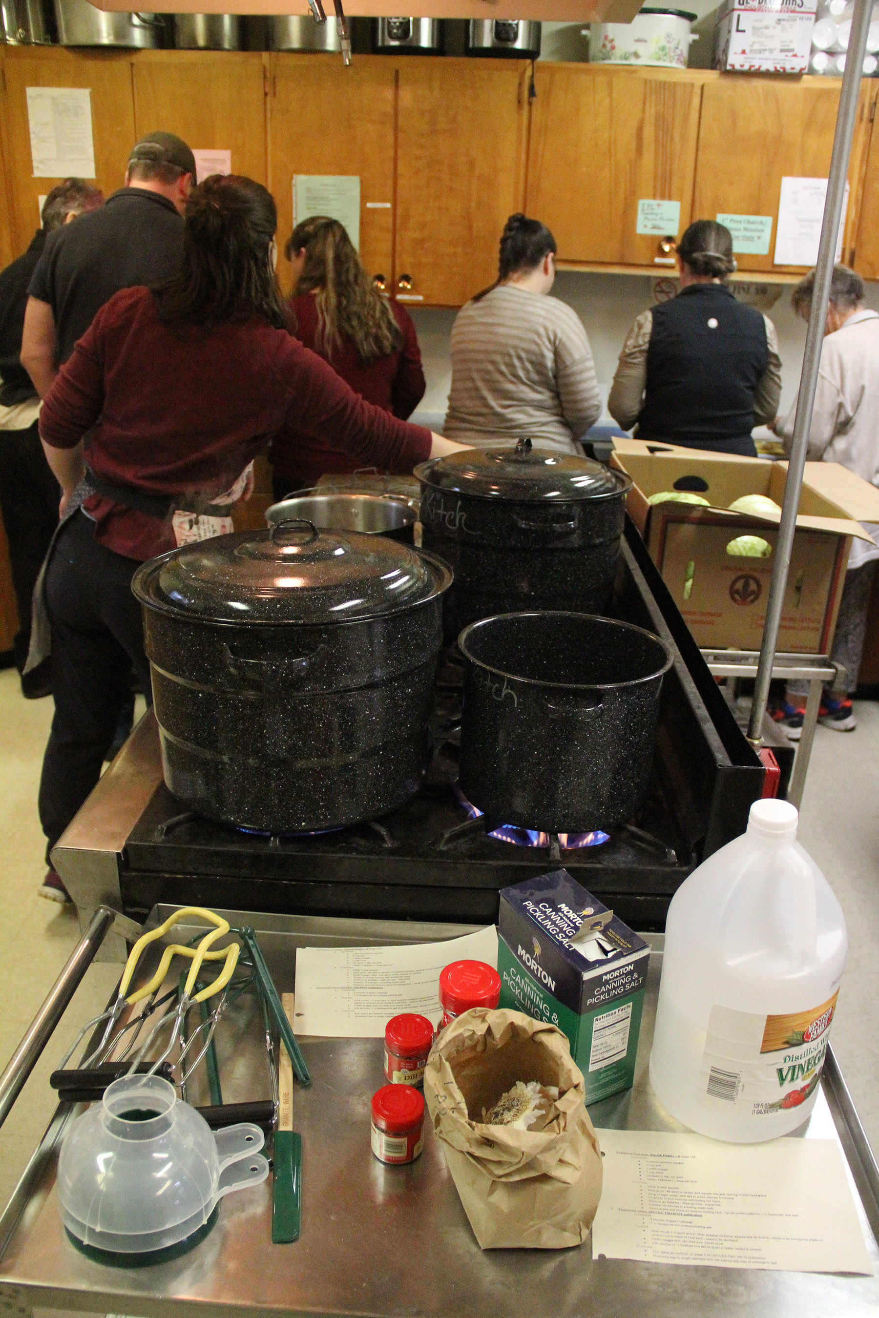 StudentsAtWorkStationsWithStoveInForeground Published July 13, 2017 at 1800 × 2700 in Scenes from the Sitka Kitch’s Preserving the Harvest class on simple pickles and sauerkraut ← Previous Next →
