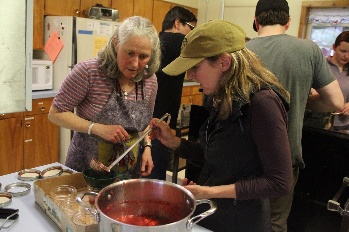 LisaSadleirHartHelpsDeniseLadleStrawberryRhubarbConserveIntoJars Published July 26, 2017 at 2700 × 1800 in Scenes from the Sitka Kitch’s Preserving the Harvest class on making jams and jellies ← Previous Next →