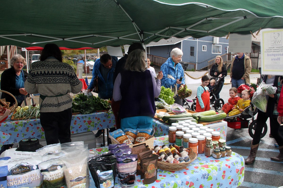 SLFNBoothCustomersShopAtMarketOpening Published July 30, 2017 at 2700 × 1800 in Scenes from the third Sitka Farmers Market of the 2017 summer ← Previous