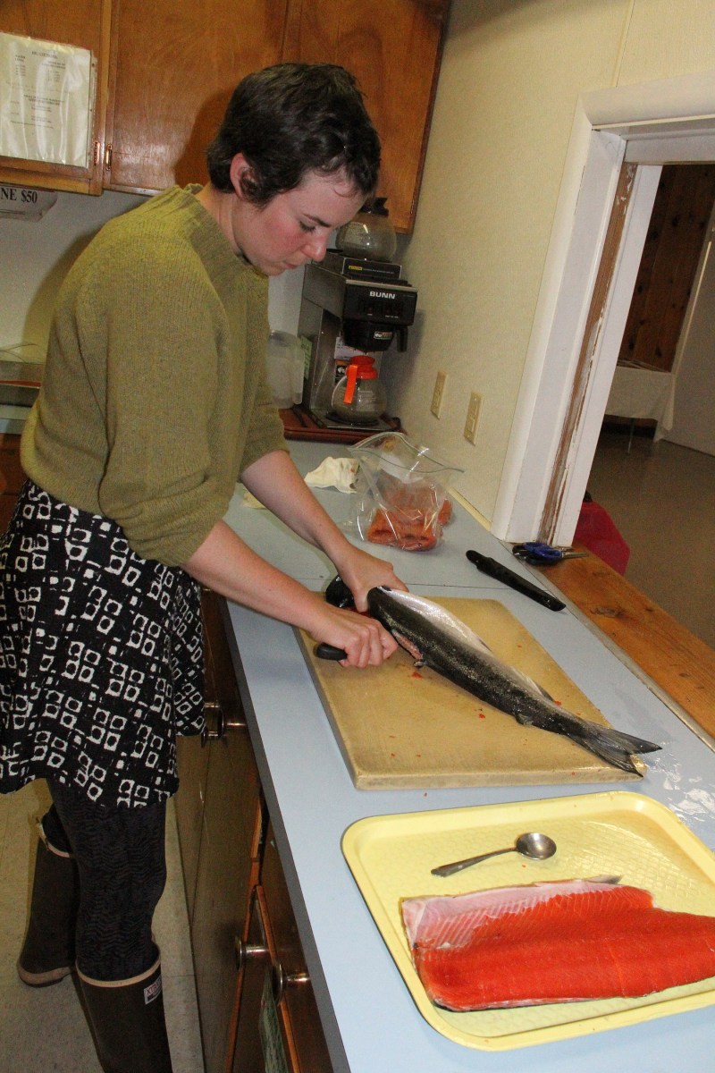 ClaireCutsSecondFilletFromSockeye Published August 18, 2017 at 1800 × 2700 in Scenes from the Sitka Kitch classes on filleting and canning salmon for the Sitka Seafood Festival ← Previous Next →