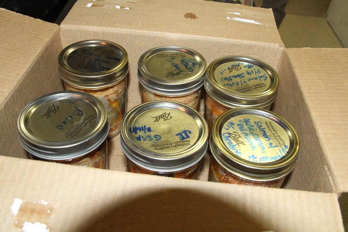 JarsOfSalmonReadyToSitOvernight Published August 18, 2017 at 2700 × 1800 in Scenes from the Sitka Kitch classes on filleting and canning salmon for the Sitka Seafood Festival ← Previous Next →