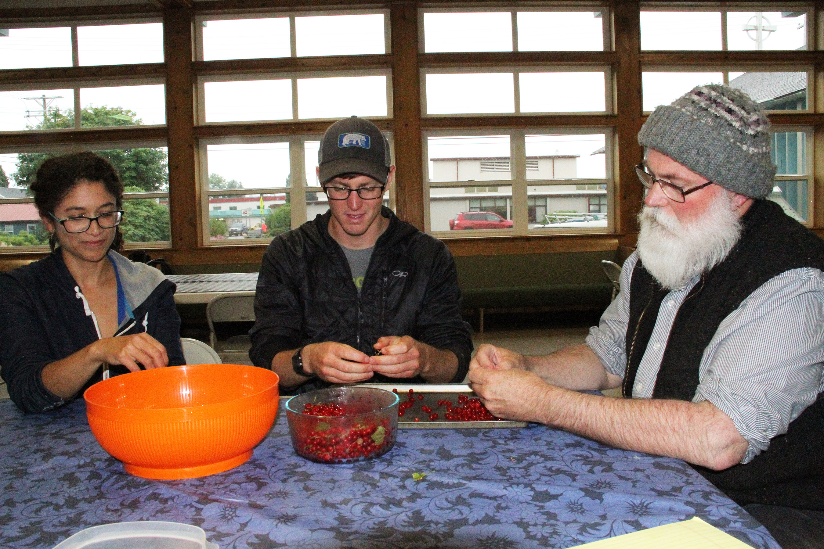 JasmineShawSeanAndBryanPickTwigsFromCurrants Published August 18, 2017 at 2700 × 1800 in Scenes from the Sitka Kitch classes on filleting and canning salmon for the Sitka Seafood Festival ← Previous Next →