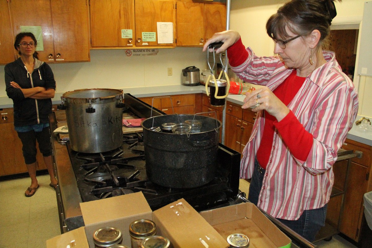 JoPullsOUtJarOfJamFromCanner Published August 18, 2017 at 2700 × 1800 in Scenes from the Sitka Kitch classes on filleting and canning salmon for the Sitka Seafood Festival ← Previous Next →