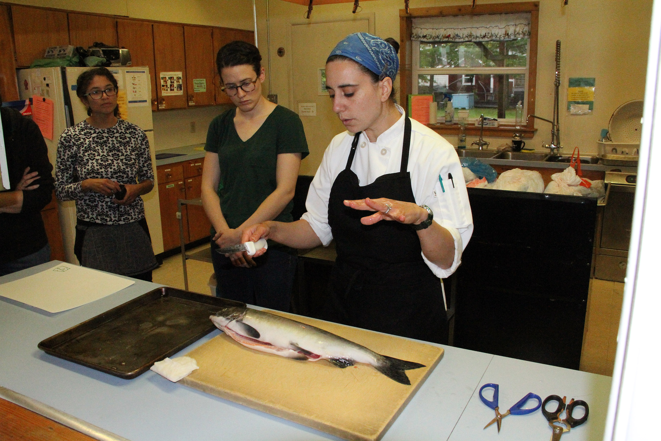 ReneeJakaitisDiscussesBasicsOfFIlletingSalmon Published August 18, 2017 at 2700 × 1800 in Scenes from the Sitka Kitch classes on filleting and canning salmon for the Sitka Seafood Festival ← Previous Next →