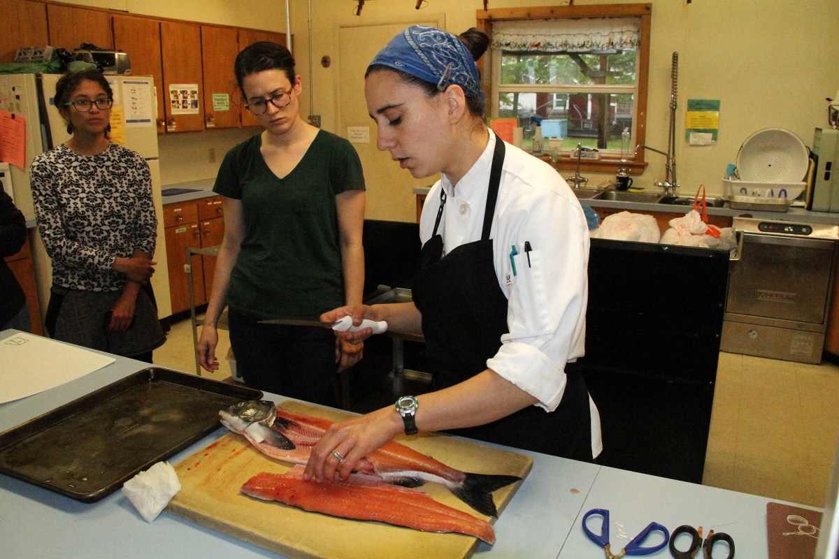 ReneeJakaitisFinishesFirstSideFillet Published August 18, 2017 at 2700 × 1800 in Scenes from the Sitka Kitch classes on filleting and canning salmon for the Sitka Seafood Festival ← Previous Next →