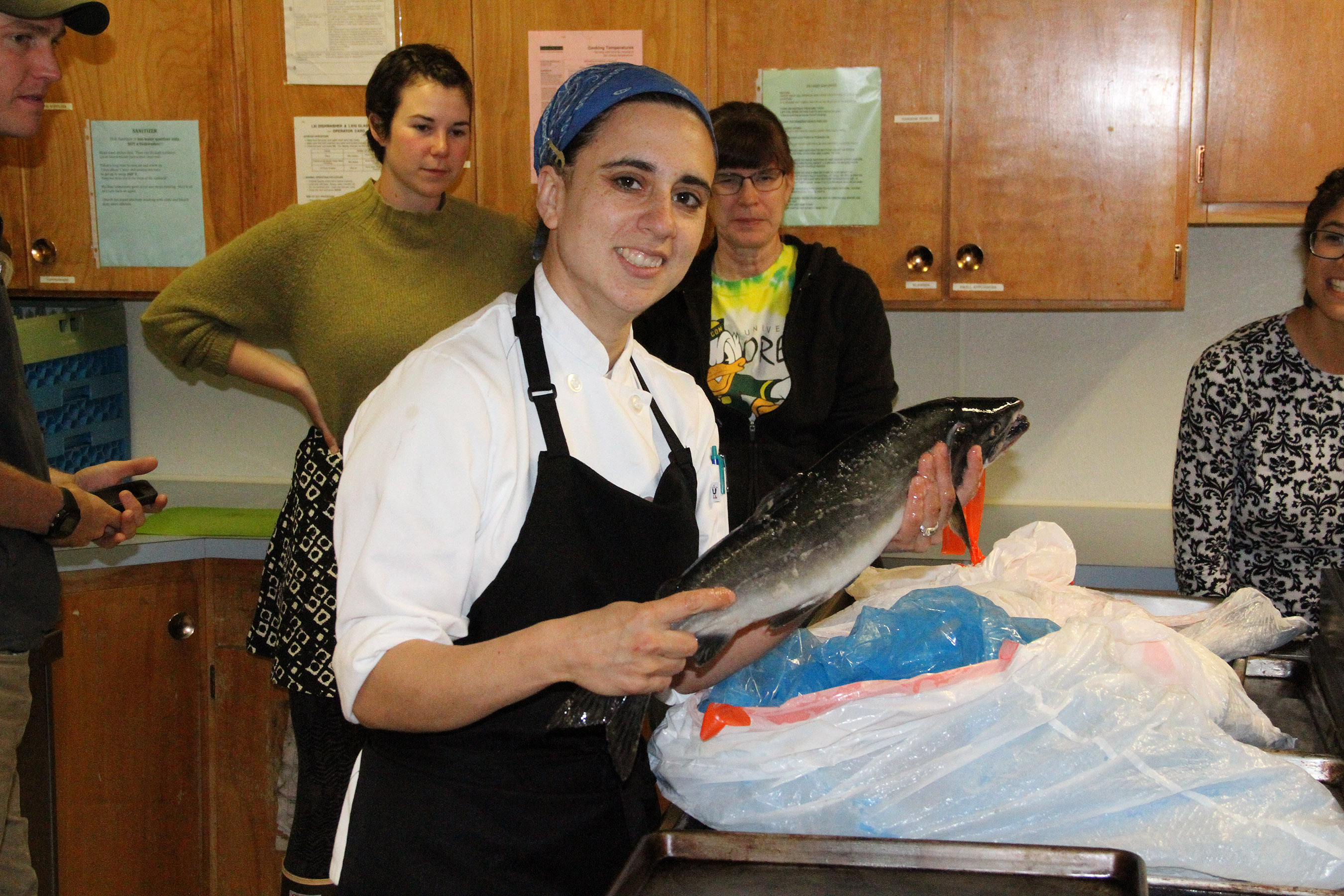 ReneeJakaitisHoldUpSalmon Published August 18, 2017 at 2700 × 1800 in Scenes from the Sitka Kitch classes on filleting and canning salmon for the Sitka Seafood Festival ← Previous Next →