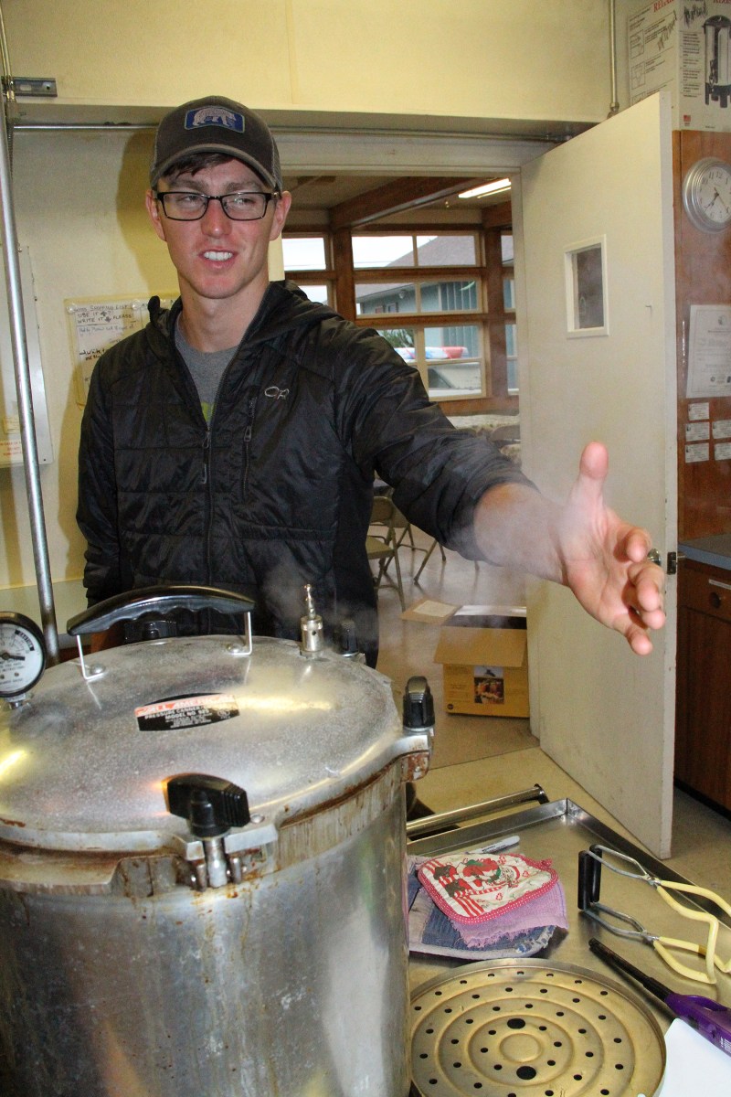 SeanChecksOutSteamFromCanner Published August 18, 2017 at 1800 × 2700 in Scenes from the Sitka Kitch classes on filleting and canning salmon for the Sitka Seafood Festival ← Previous Next →