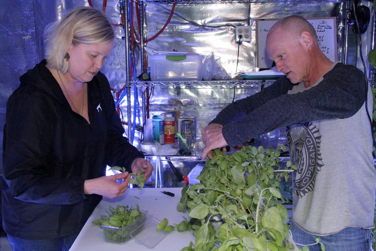 LesliePacksBasilAsJimmieTrims Published August 30, 2017 at 2700 × 1800 in Beyond Leafy LLC grows fresh, local basil for Sitka market using vertical hydroponics ← Previous Next →