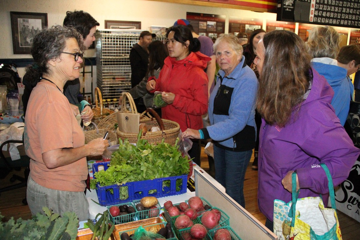 SLFNBoothEllenAndClaireTalkToCustomers Published October 4, 2017 at 2700 × 1800 in Scenes from the seventh and last Sitka Farmers Market of the 2017 summer ← Previous Next →