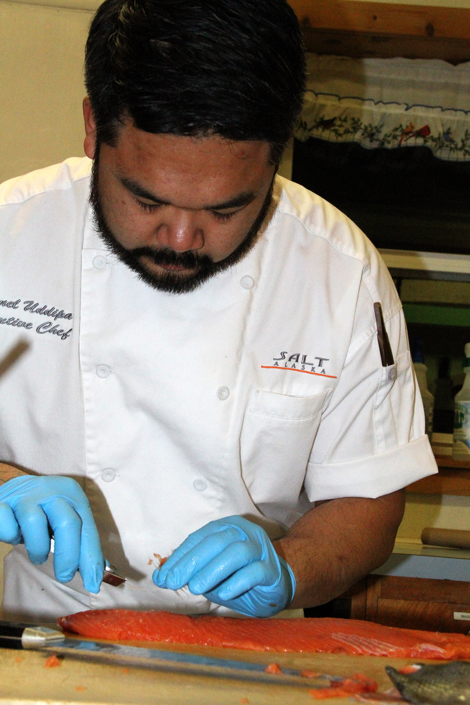 ChefLionelUddipaPullsPinbones Published November 8, 2017 at 1800 × 2700 in Scenes from the Cooking From Scratch class on Fish ‘n Veggies at the Sitka Kitch ← Previous Next →