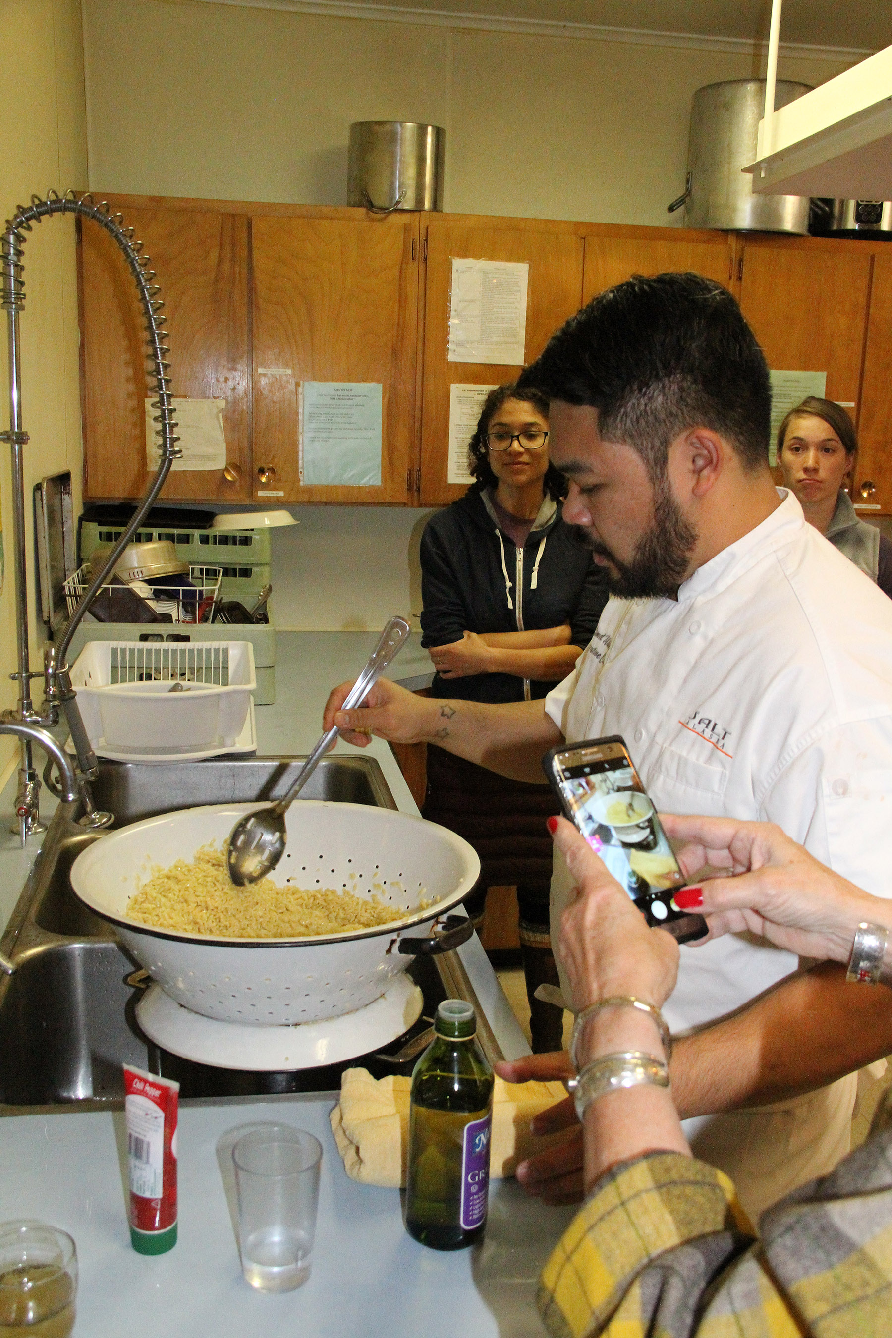 ChefLionelUddipaStrainsOrzoPastaInCollander Published November 8, 2017 at 1800 × 2700 in Scenes from the Cooking From Scratch class on Fish ‘n Veggies at the Sitka Kitch ← Previous Next →