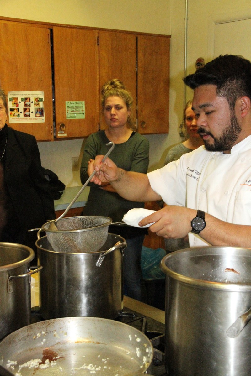 CHefLioneUddipaLadlesChickenStockVeggieBrothIntoRisotto Published November 10, 2017 at 1800 × 2700 in Scenes from the Cooking From Scratch Great American Seafood Cook-Off demonstration at the Sitka Kitch ← Previous Next →