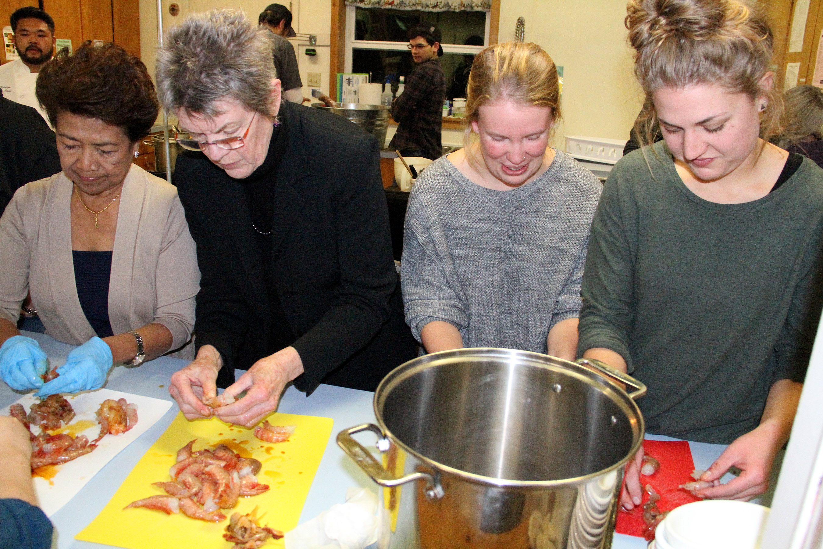 DesiMarieCallieKristinaPeelShrimp Published November 10, 2017 at 2700 × 1800 in Scenes from the Cooking From Scratch Great American Seafood Cook-Off demonstration at the Sitka Kitch ← Previous Next →