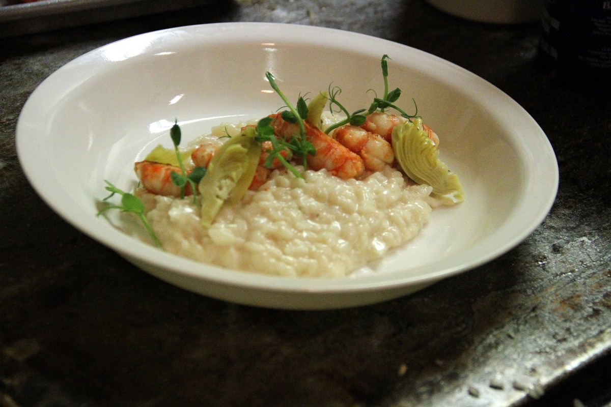 SpotPrawnsOnRisottoWithArtichokesAndPeaSproutsAsGarnish Published November 10, 2017 at 2700 × 1800 in Scenes from the Cooking From Scratch Great American Seafood Cook-Off demonstration at the Sitka Kitch ← Previous Next →