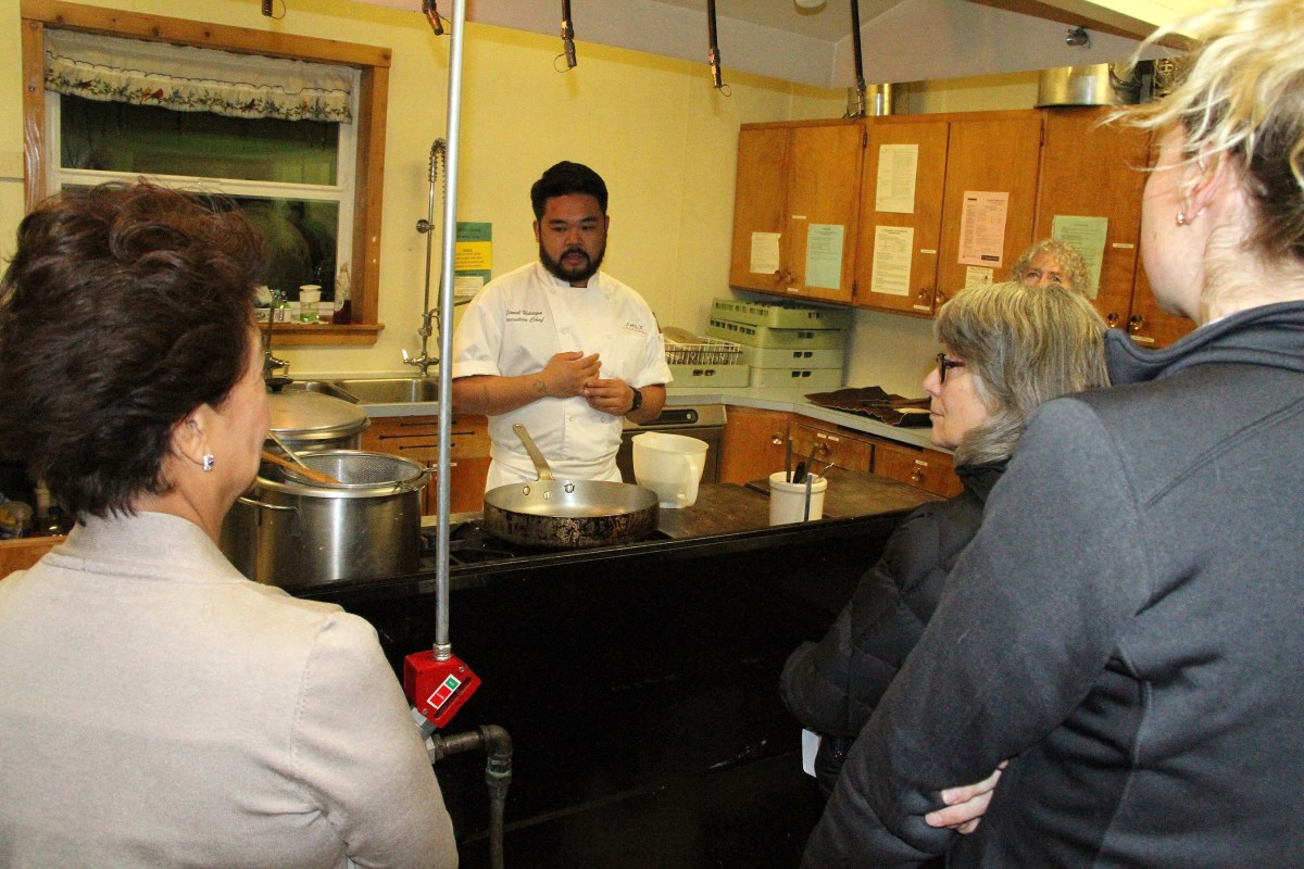 StudentsListenToChefLionelUddipaInKitchen Published November 10, 2017 at 2700 × 1800 in Scenes from the Cooking From Scratch Great American Seafood Cook-Off demonstration at the Sitka Kitch ← Previous Next →