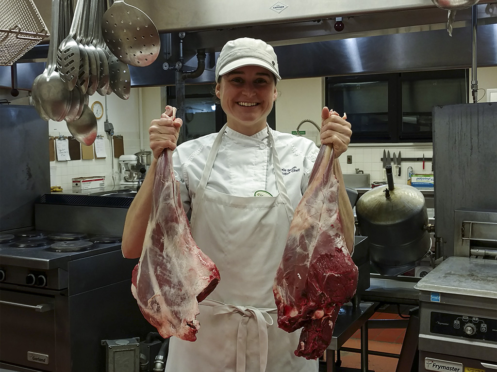 IMG_8284Lexie-TradFood Published January 10, 2018 at 1024 × 768 in SEARHC Mt. Edgecumbe Hospital patients now have traditional food options ← Previous NMS Chef Manager Lexie Smith holds deer hind quarters before preparing them for Mt. Edgecumbe Hospital patients as part of the hospital’s new traditional food options