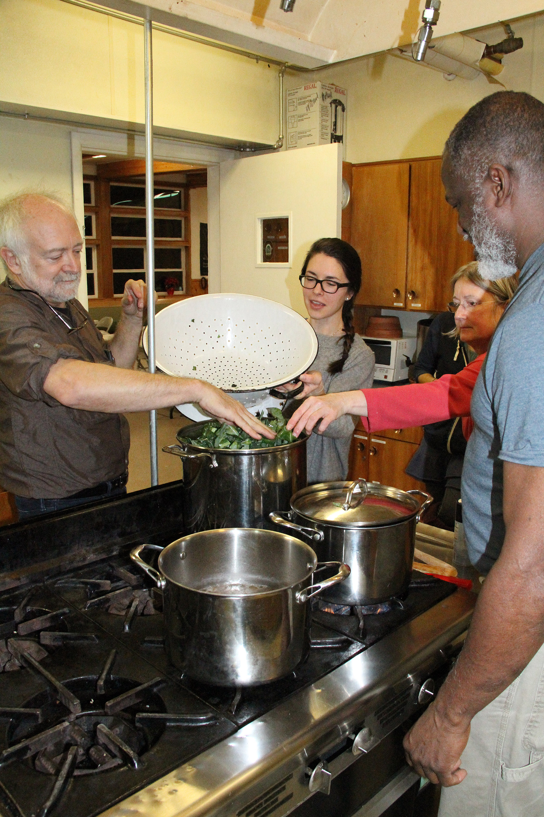 DonLaurenMargAndHankAddingCollardGreensToPot Published January 18, 2018 at 1800 × 2700 in Scenes from the Seasonal Cooking: Cooking With Hank Moore class at the Sitka Kitch ← Previous Next →