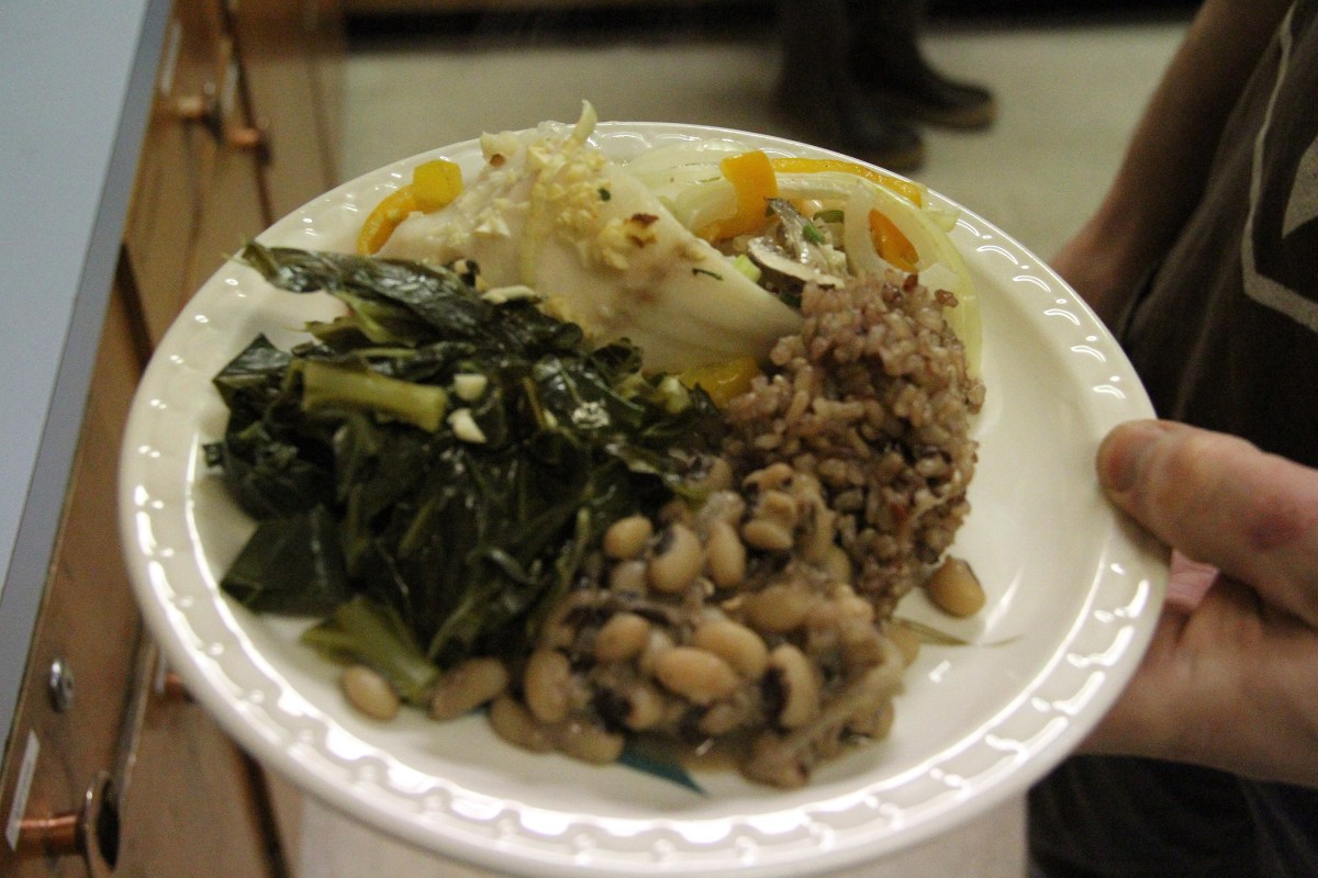 PlateOfCollardGreensBlackEyedPeasRiceBlackCod Published January 18, 2018 at 2700 × 1800 in Scenes from the Seasonal Cooking: Cooking With Hank Moore class at the Sitka Kitch ← Previous Next →