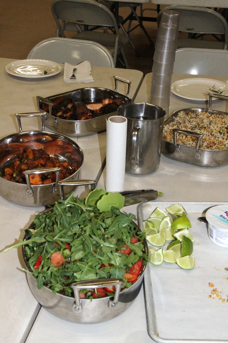 DishesReadyToServeSaladSquashSalmonCouscousLimesYogurt Published February 14, 2018 at 1800 × 2700 in Scenes from the second Seasonal Cooking class: Spice It Up With Lexie Smith at the Sitka Kitch ← Previous Next →