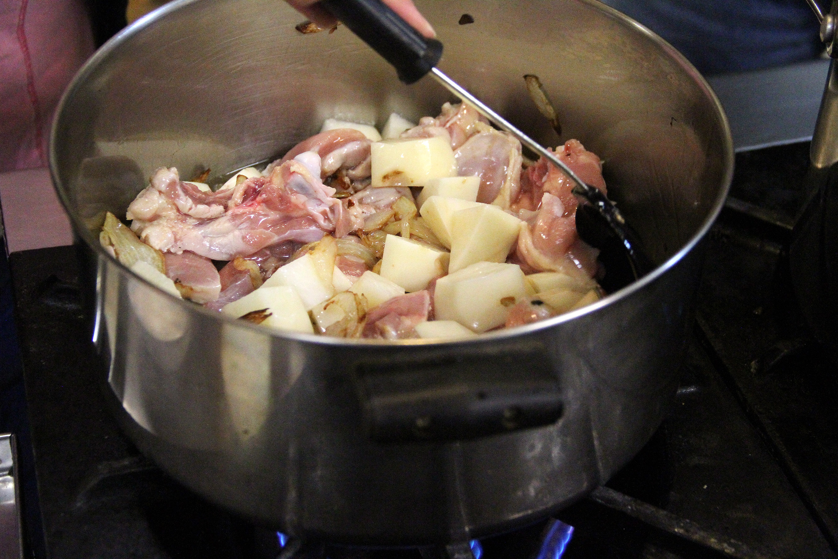 ChickenPotatoesPeppersNewInPotWithBrownedOnions Published March 1, 2018 at 2700 × 1800 in Scenes from the third Seasonal Cooking class: Pakistani Cooking With Shanzila Ahmed at the Sitka Kitch ← Previous Next →