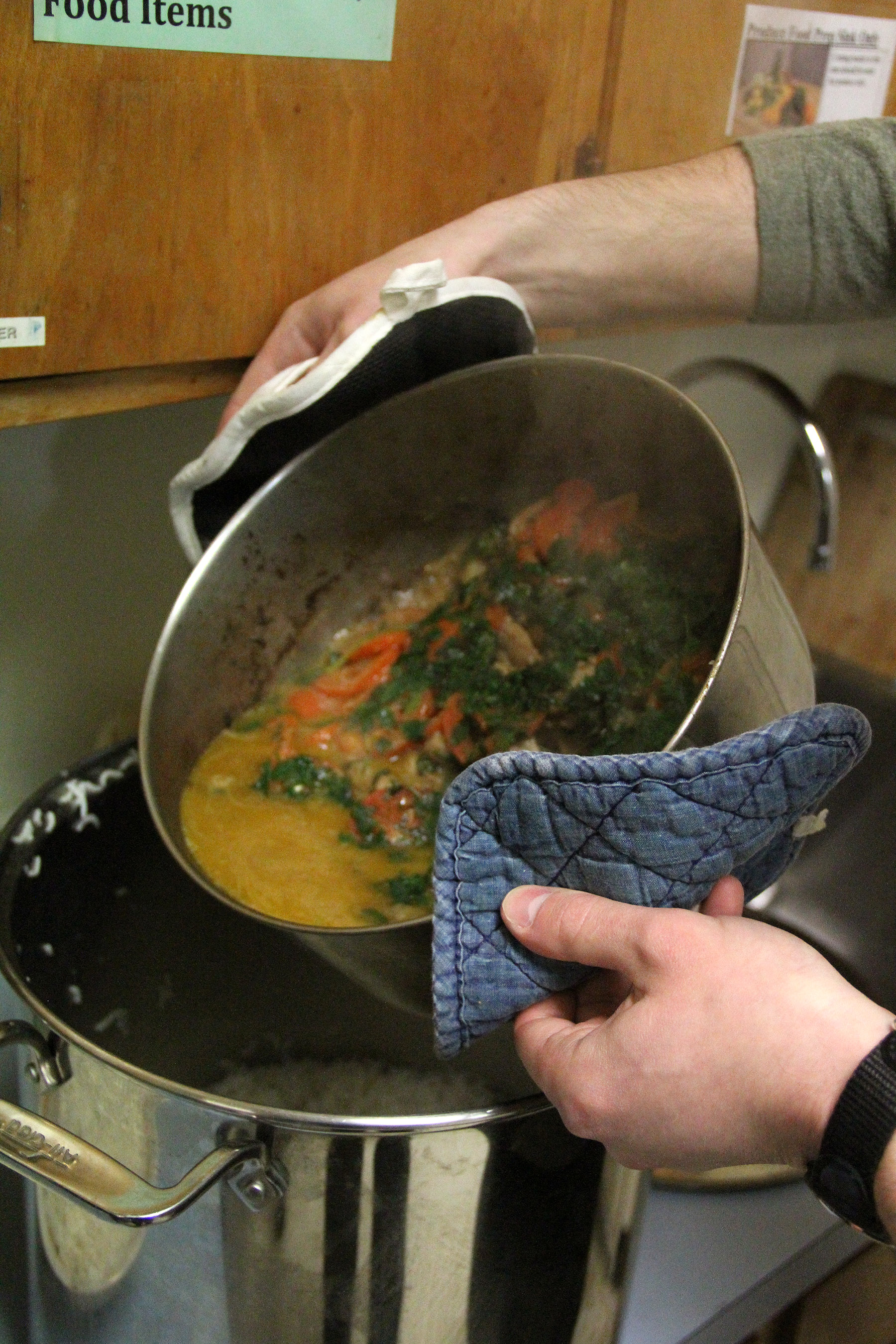 PouringBiryaniOntoHalfPortionOfDrainedRice Published March 1, 2018 at 1800 × 2700 in Scenes from the third Seasonal Cooking class: Pakistani Cooking With Shanzila Ahmed at the Sitka Kitch ← Previous Next →