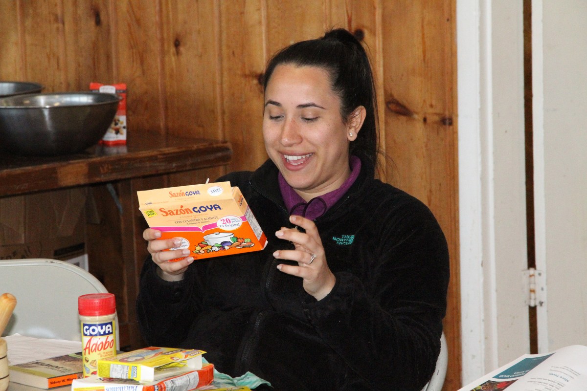 NinaLaughsAsSheComparesEnglishAndSpanishTextOnBoxOfSazón Published May 6, 2018 at 2700 × 1800 in Scenes from the final Seasonal Cooking class: Puerto Rican Cooking With Nina Vizcarrondo at the Sitka Kitch ← Previous Next →