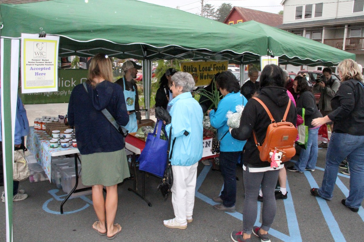 SLFNBoothCrowdCheckingOutProduce Published July 9, 2018 at 2700 × 1800 in Scenes from the first Sitka Farmers Market of the 2018 summer ← Previous Next →