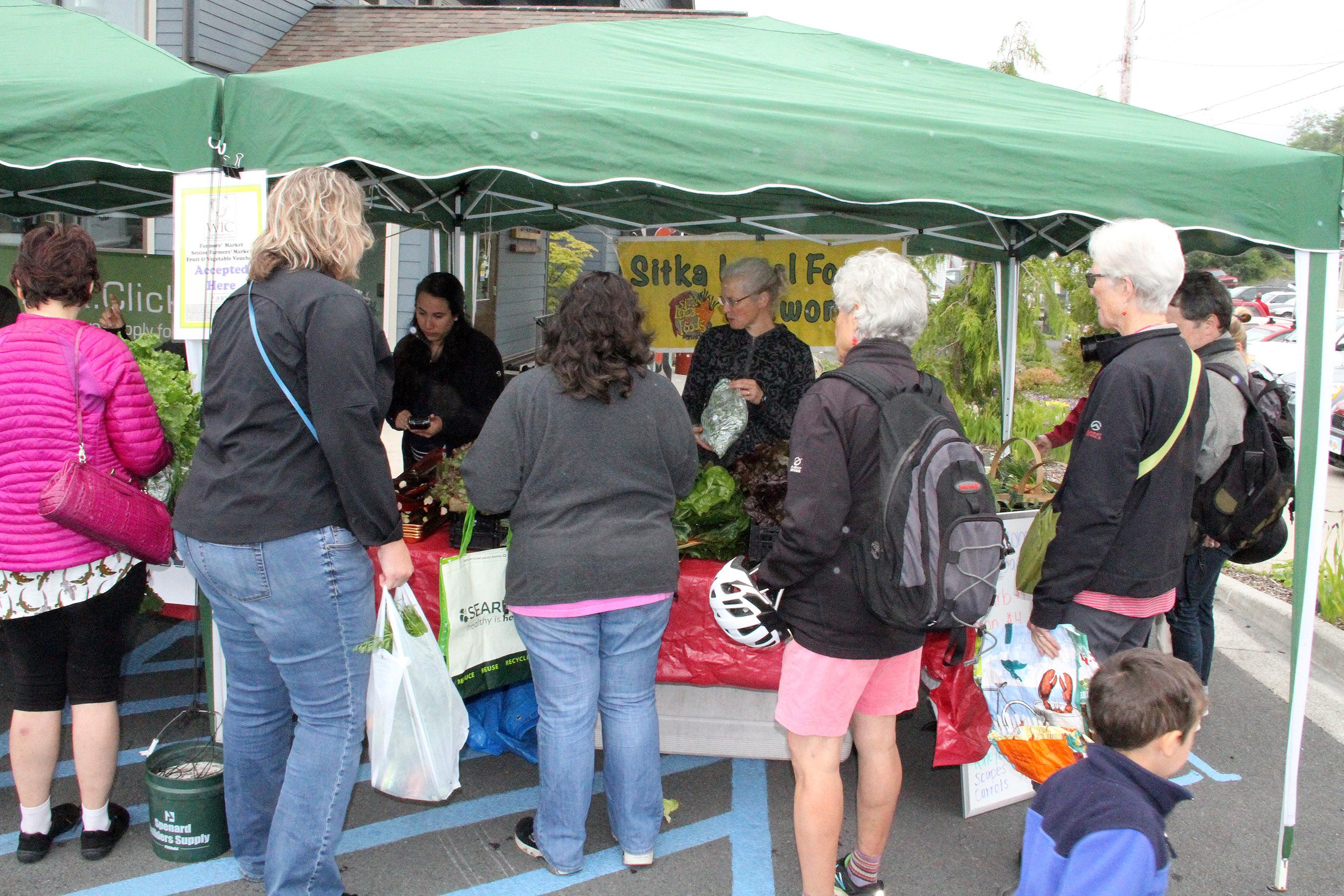 SLFNBoothNinaVizcarrondoLauraSchmidtHelpCustomers Published July 9, 2018 at 2700 × 1800 in Scenes from the first Sitka Farmers Market of the 2018 summer ← Previous