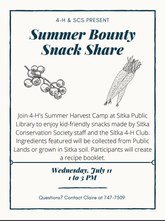 Summer Snack (1).pdf copy Published July 9, 2018 at 538 × 723 in Sitka Conservation Society, 4-H host summer bounty snack share at Sitka Public Library