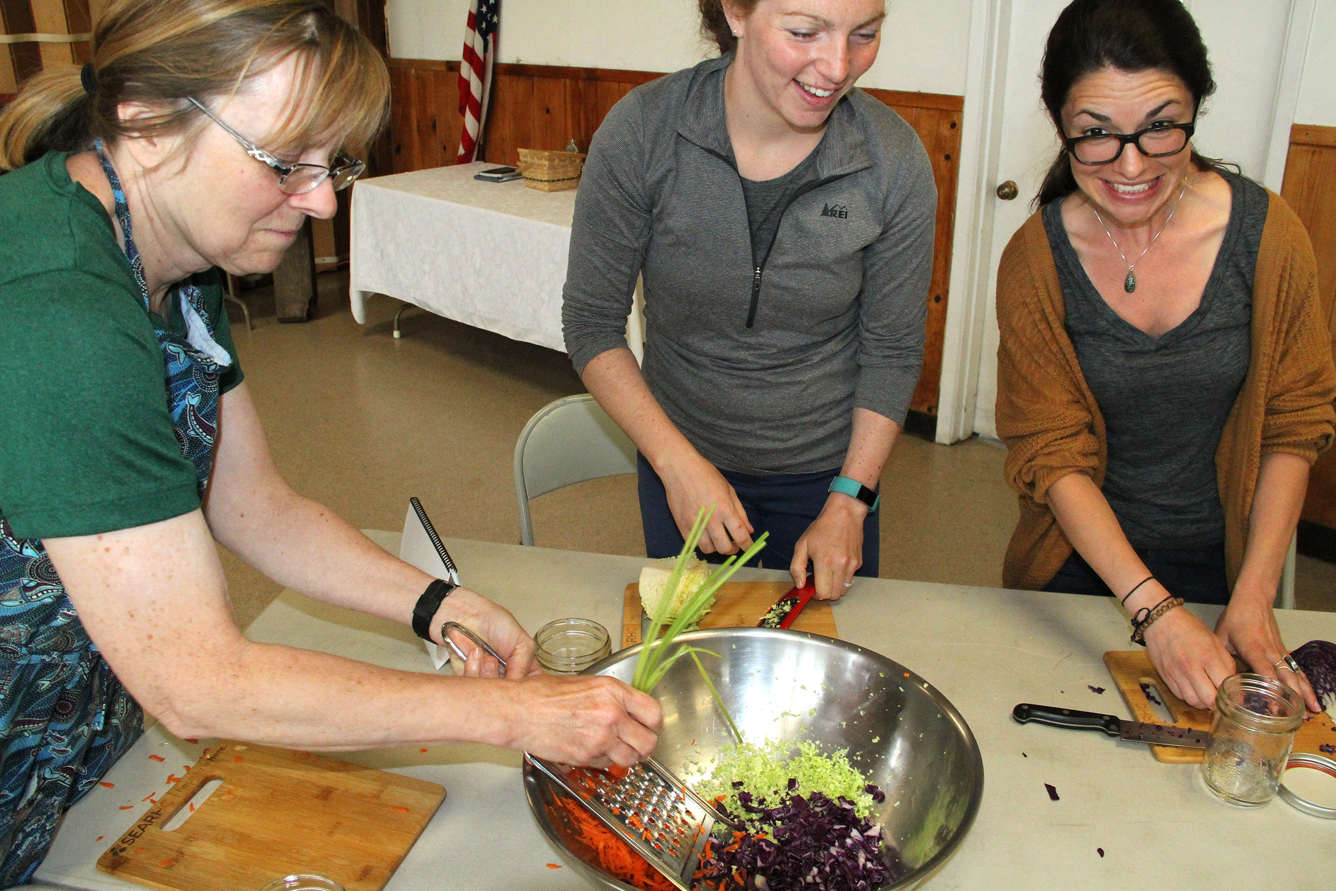 AmyRebaLaurenChopVeggies Published July 10, 2018 at 2700 × 1800 in Scenes from the Fermentation Workshop With Sandor Katz held July 9 at the Sitka Kitch ← Previous Next →