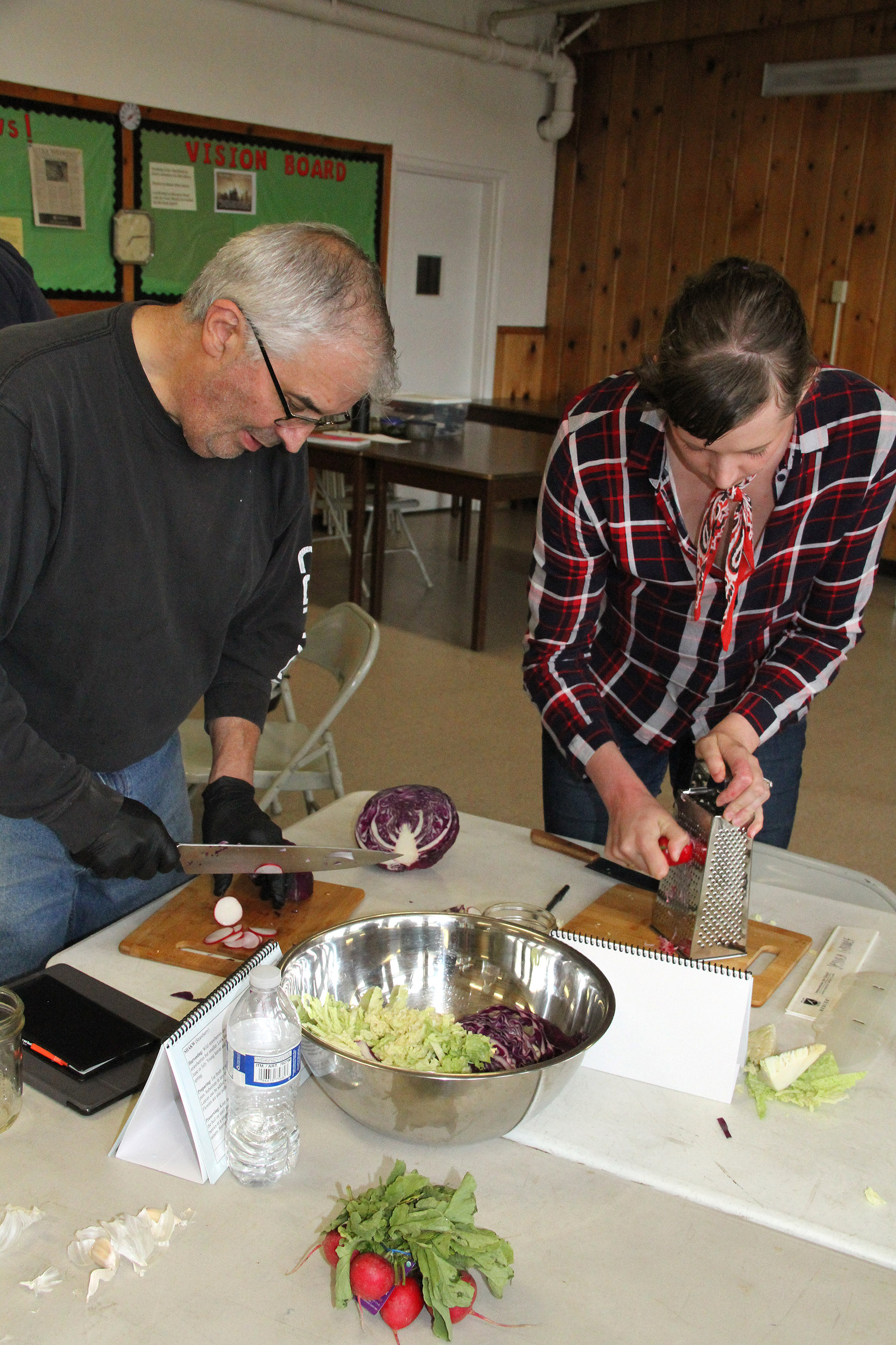 RandallChopsCabbageJessicaGratesRadishes Published July 10, 2018 at 1800 × 2700 in Scenes from the Fermentation Workshop With Sandor Katz held July 9 at the Sitka Kitch ← Previous Next →