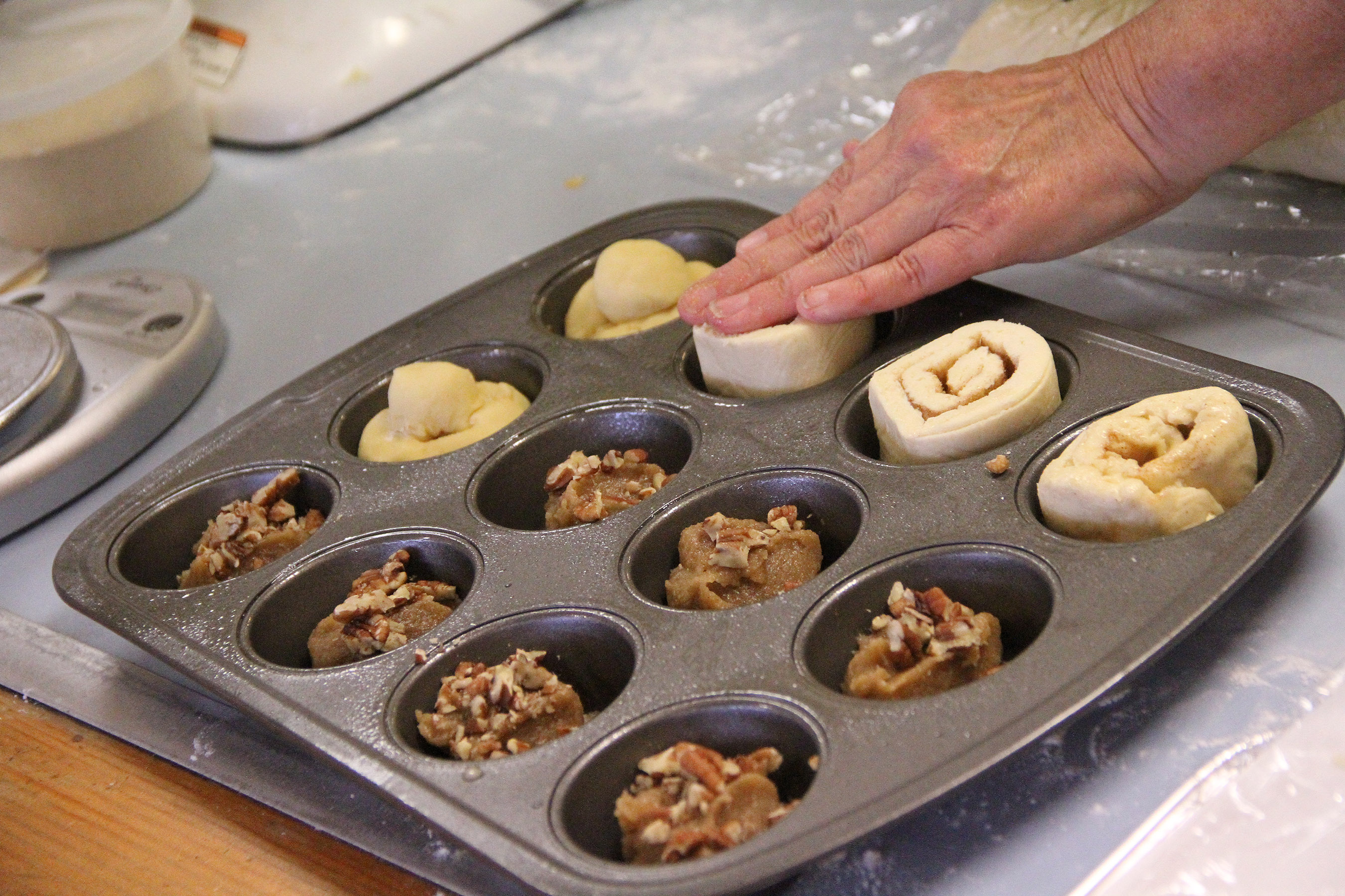 PuttingCinnamonRollDoughOnSmearInPan Published July 12, 2018 at 2700 × 1800 in Scenes from the Sitka Kitch ‘Baking With Betsy: Sweet Breads’ class on July 10 ← Previous Next →