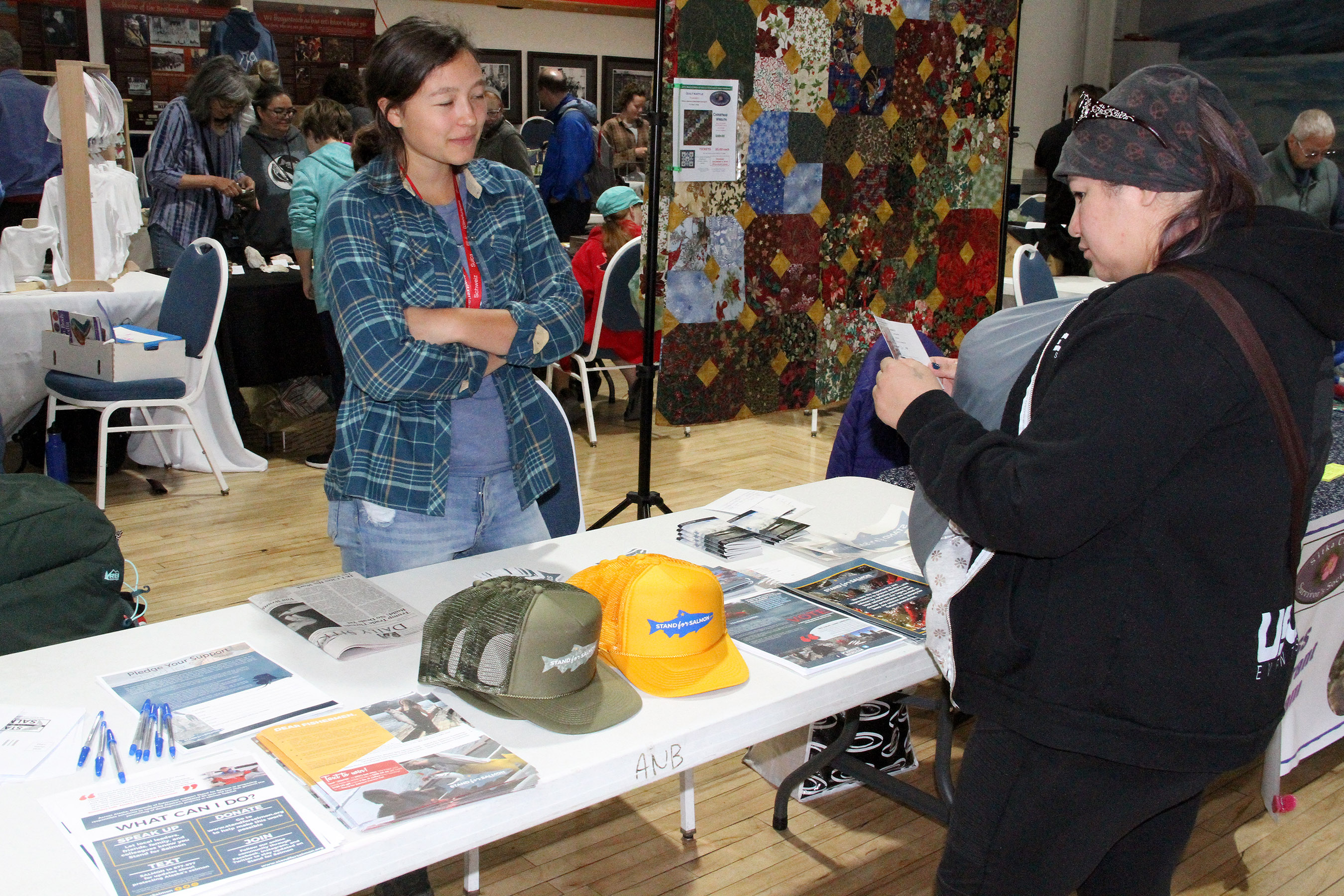 CarlyDennisTalksWithLadyAboutStandForSalmonInitiative Published July 23, 2018 at 2700 × 1800 in Scenes from the second Sitka Farmers Market of the 2018 summer ← Previous Next →