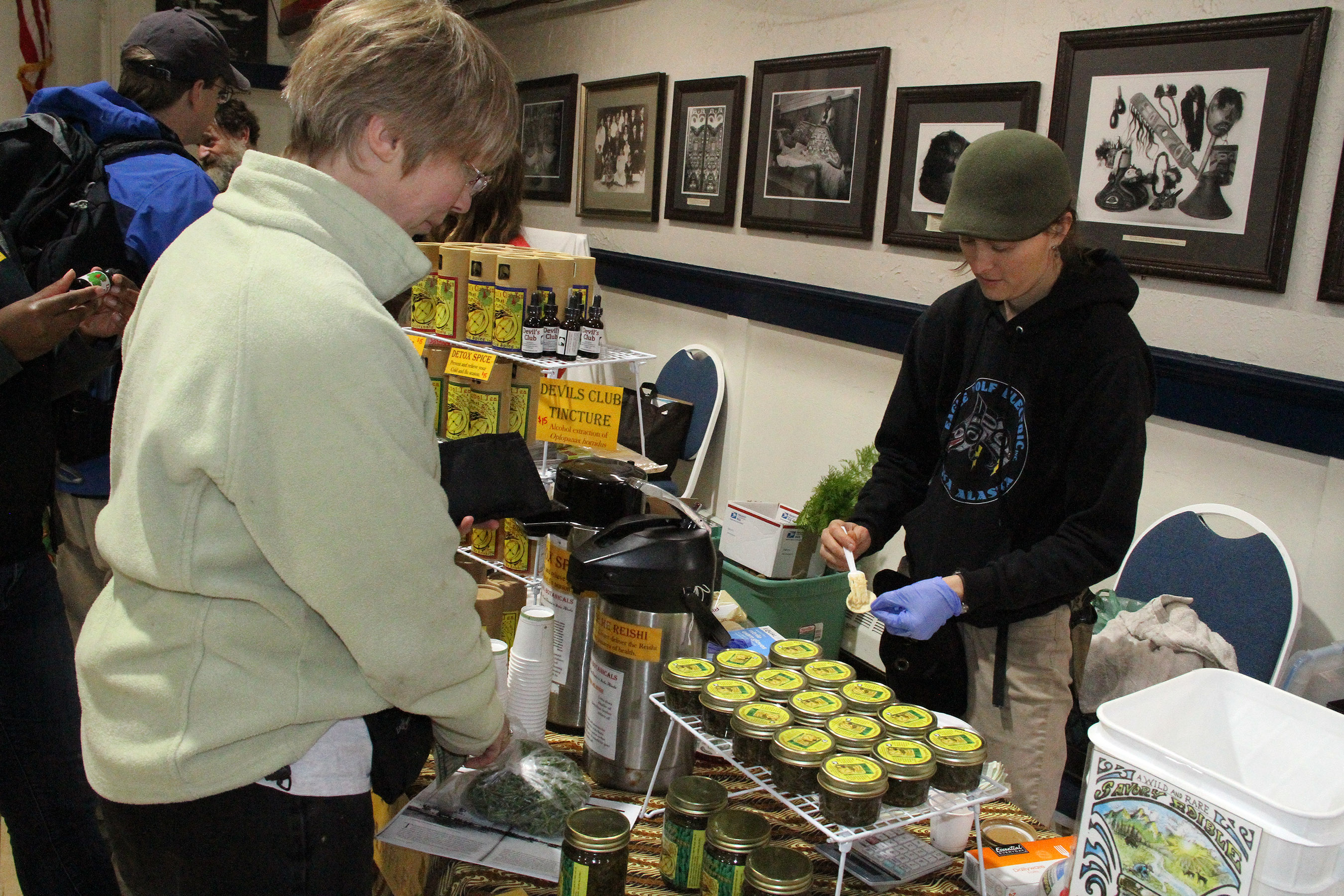 HopeMerrittGimbalBotanicalsPreparesSampleForMichellePutz Published July 23, 2018 at 2700 × 1800 in Scenes from the second Sitka Farmers Market of the 2018 summer ← Previous Next →