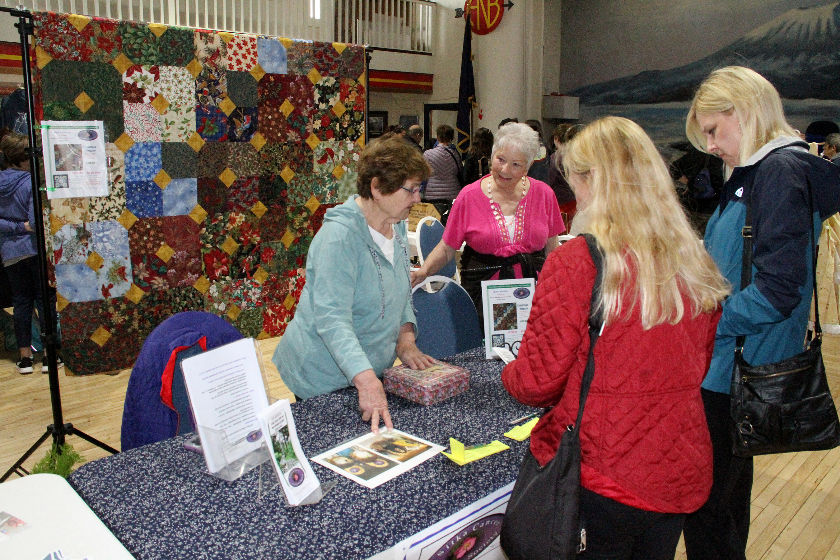 SitkaCancerSurvivorsSocietyBonnieHelpsCustomersWithQuiltRaffle Published July 23, 2018 at 2700 × 1800 in Scenes from the second Sitka Farmers Market of the 2018 summer ← Previous Next →