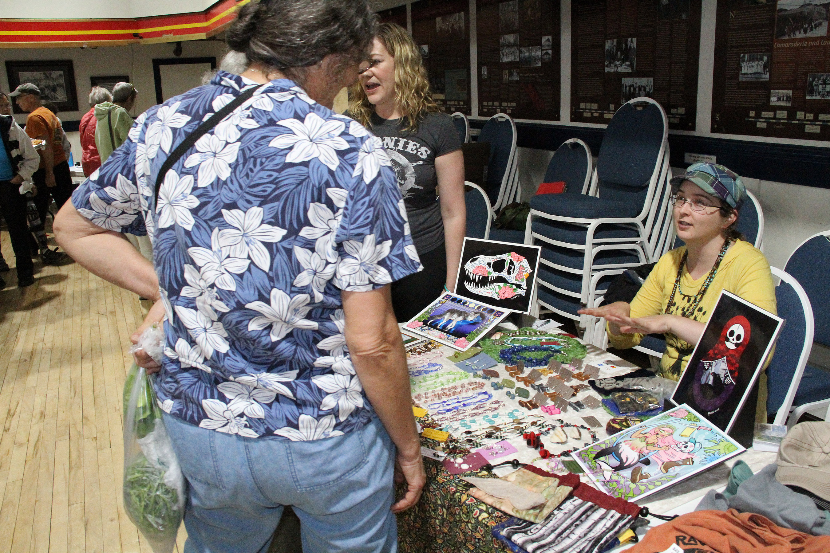 RavensRandomRavenShawWithCustomers Published August 6, 2018 at 2700 × 1800 in Scenes from the third Sitka Farmers Market of the 2018 summer ← Previous Next →