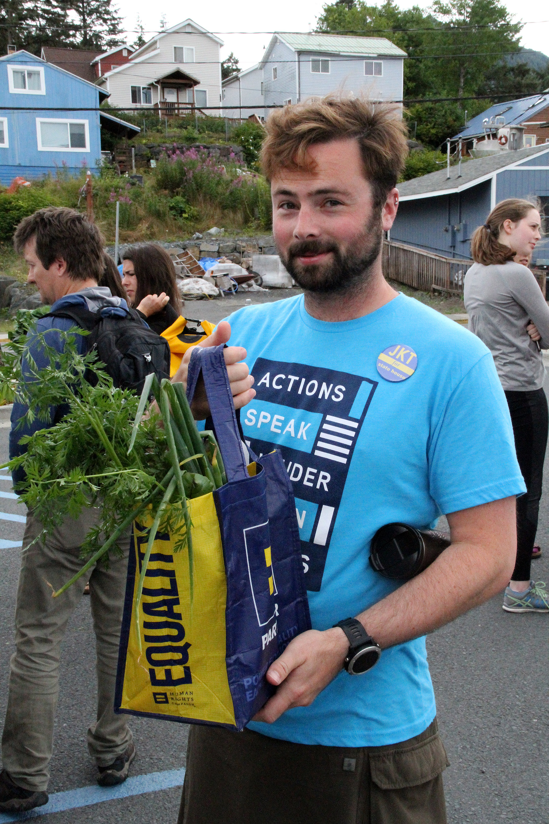 SLFNBoothStephenCourtrightWithBagOfProduce Published August 6, 2018 at 1800 × 2700 in Scenes from the third Sitka Farmers Market of the 2018 summer ← Previous Next →