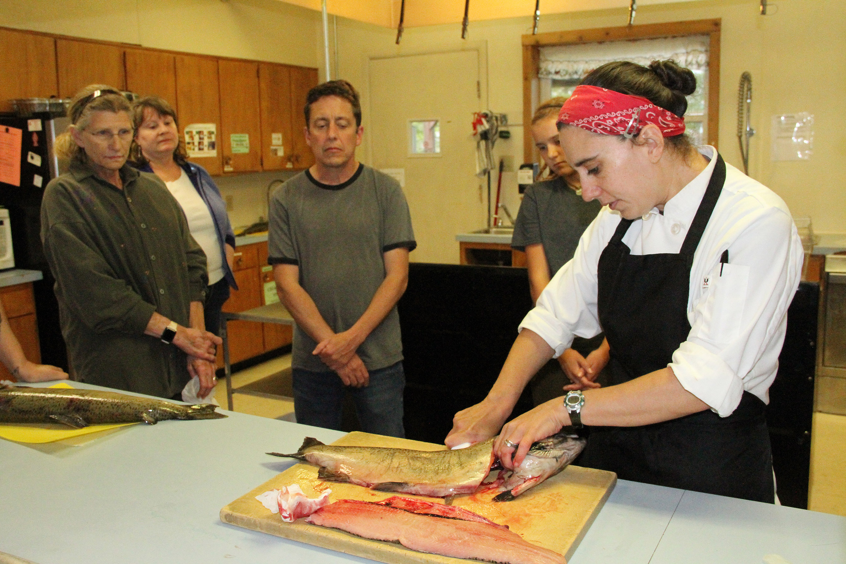 CaroleSueGregGwenWatchReneeFilletSecondSideOfSalmon Published August 9, 2018 at 2700 × 1800 in Scenes from the Sitka Kitch class on how to fillet a salmon held Aug. 7 with the Sitka Seafood Festival ← Previous Next →