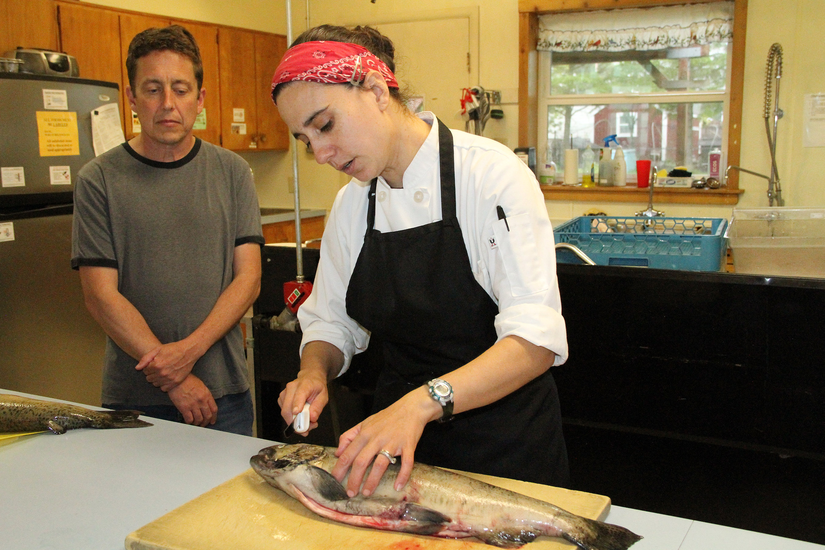ReneeMakesFirstCutGregWatches Published August 9, 2018 at 2700 × 1800 in Scenes from the Sitka Kitch class on how to fillet a salmon held Aug. 7 with the Sitka Seafood Festival ← Previous Next →