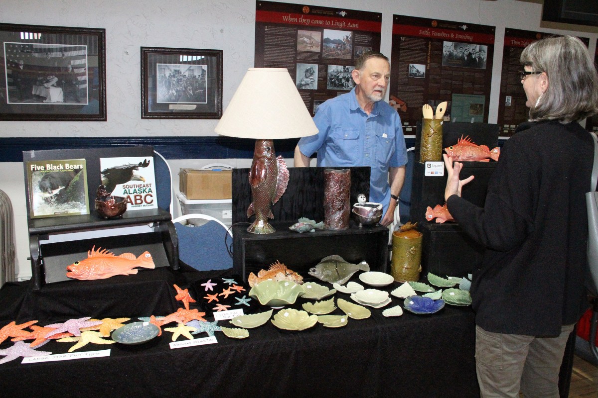 FishBoneStudiosRonMcClainWithCustomer Published August 14, 2018 at 2700 × 1800 in Scenes from the fourth Sitka Farmers Market of the 2018 summer ← Previous Next →