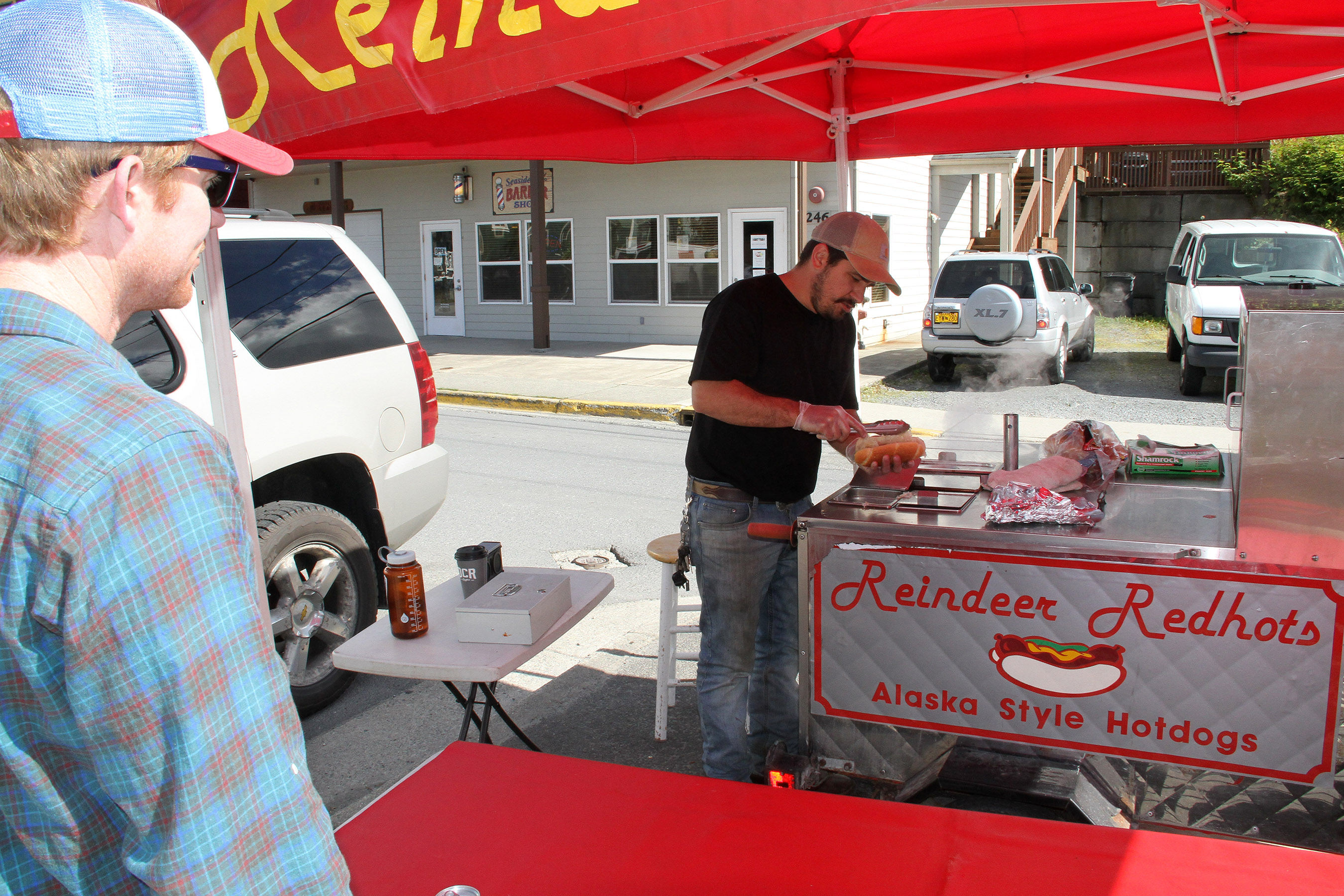 ReindeerRedhotsPeteFurlongWithCustomer Published August 14, 2018 at 2700 × 1800 in Scenes from the fourth Sitka Farmers Market of the 2018 summer ← Previous Next →