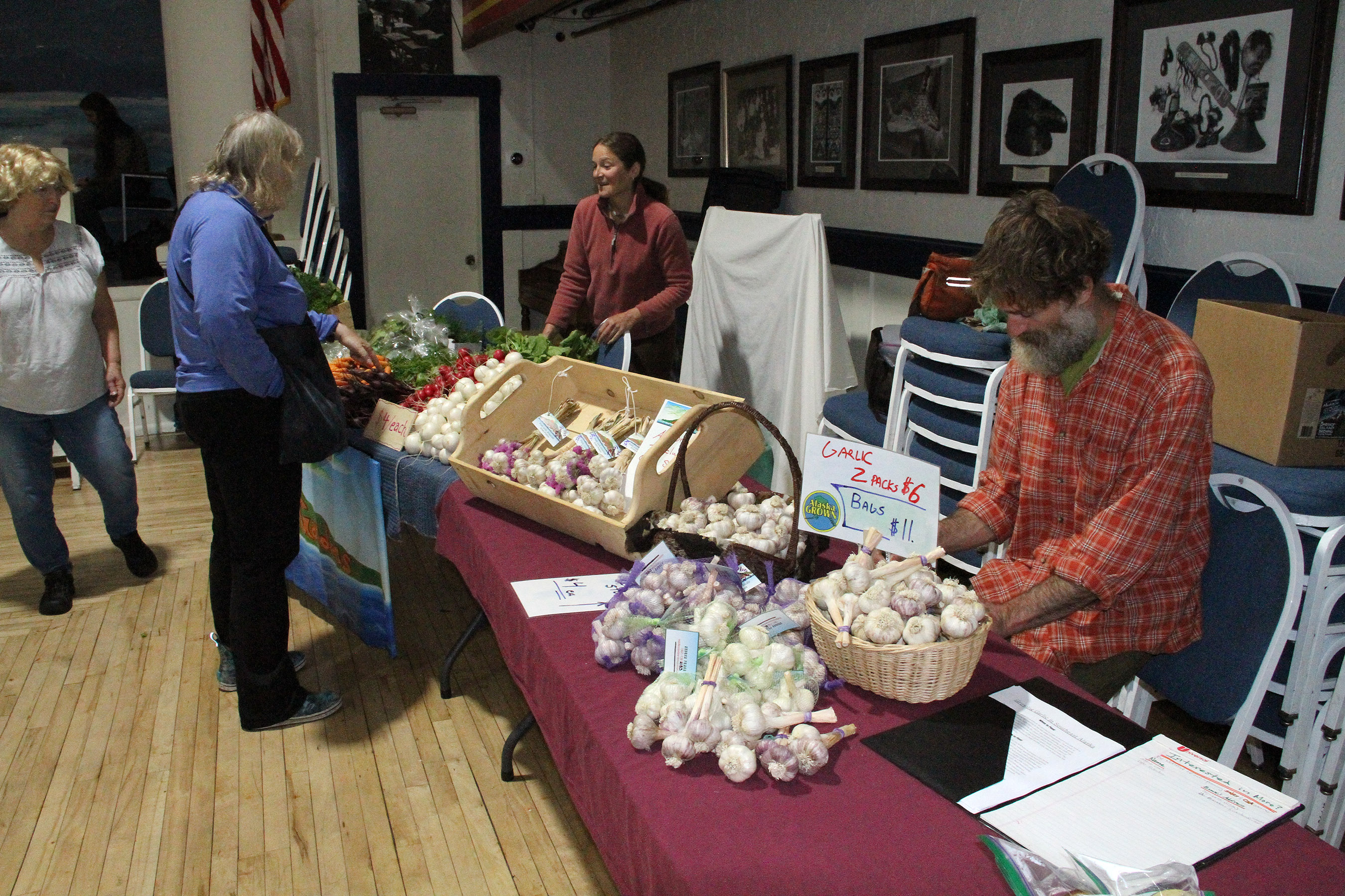 MiddleIslandGardensAndreaFragaTalksWithCustomerKalebAldredMakesGarlicDisplay Published August 27, 2018 at 2700 × 1800 in Scenes from the fifth Sitka Farmers Market of the 2018 summer ← Previous Next →