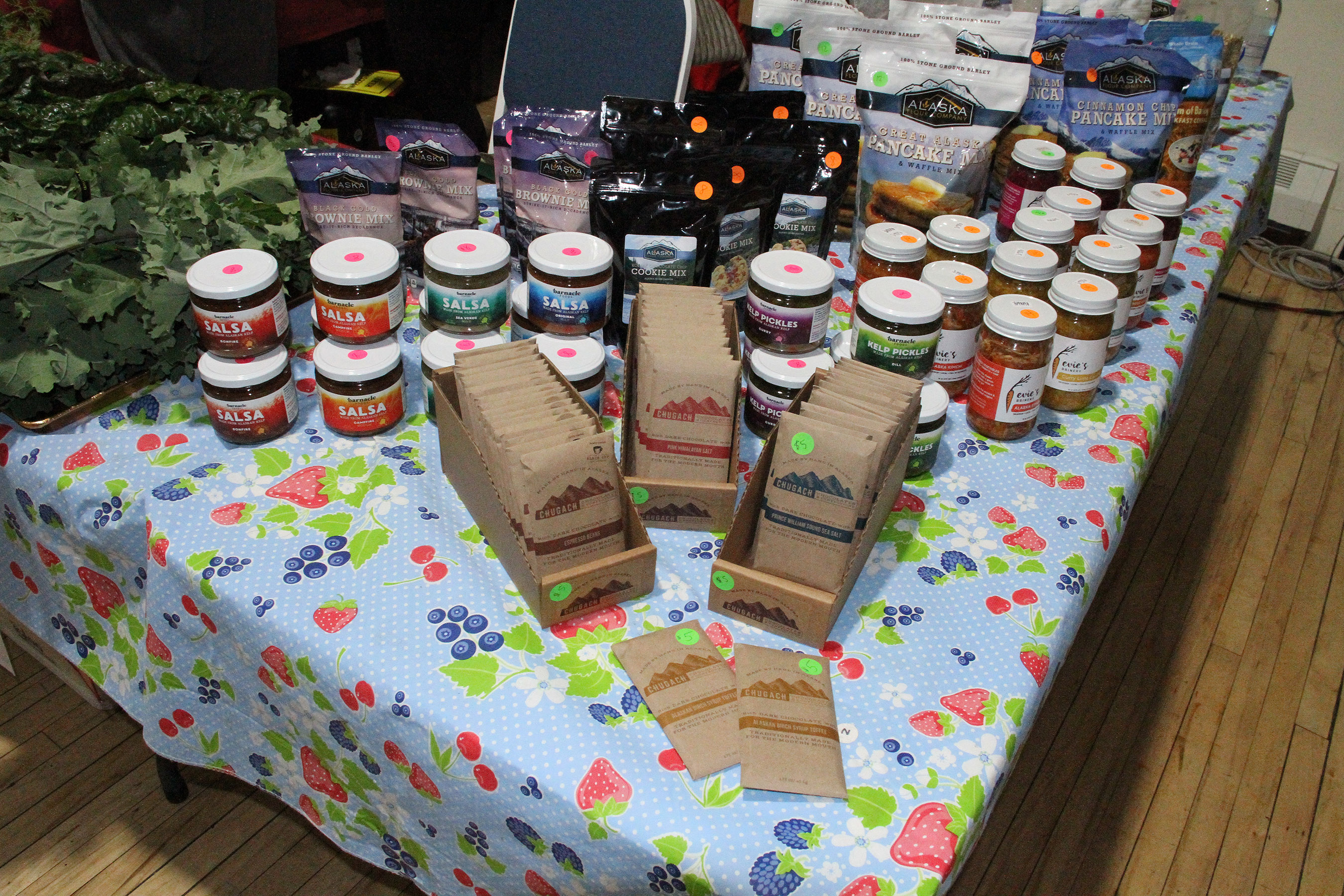SLFNBoothAlaskaGrownProductsBarnacleChugachChocolatesEviesBrineryAlaskaFlourCompany Published August 27, 2018 at 2700 × 1800 in Scenes from the fifth Sitka Farmers Market of the 2018 summer ← Previous Next →